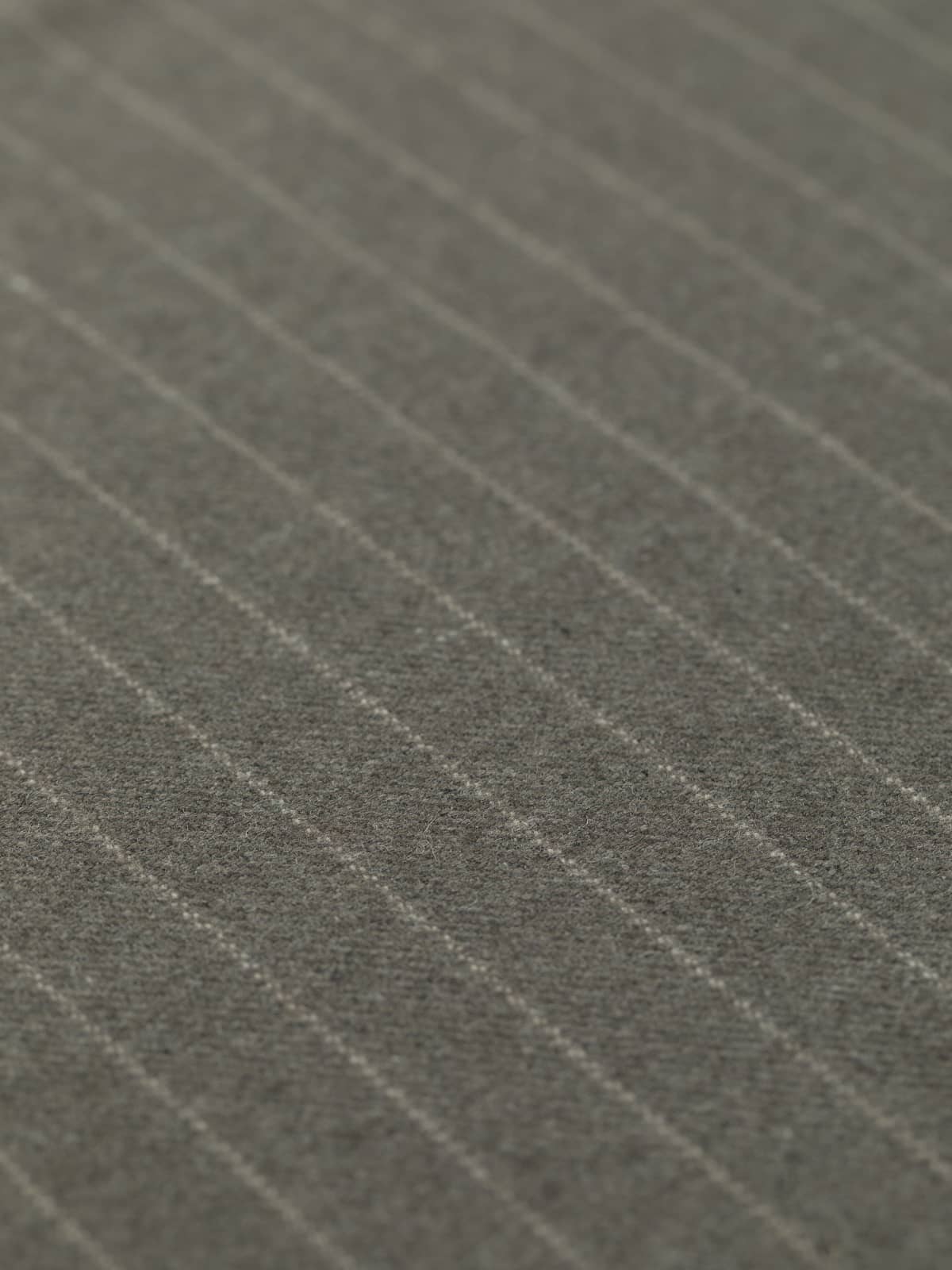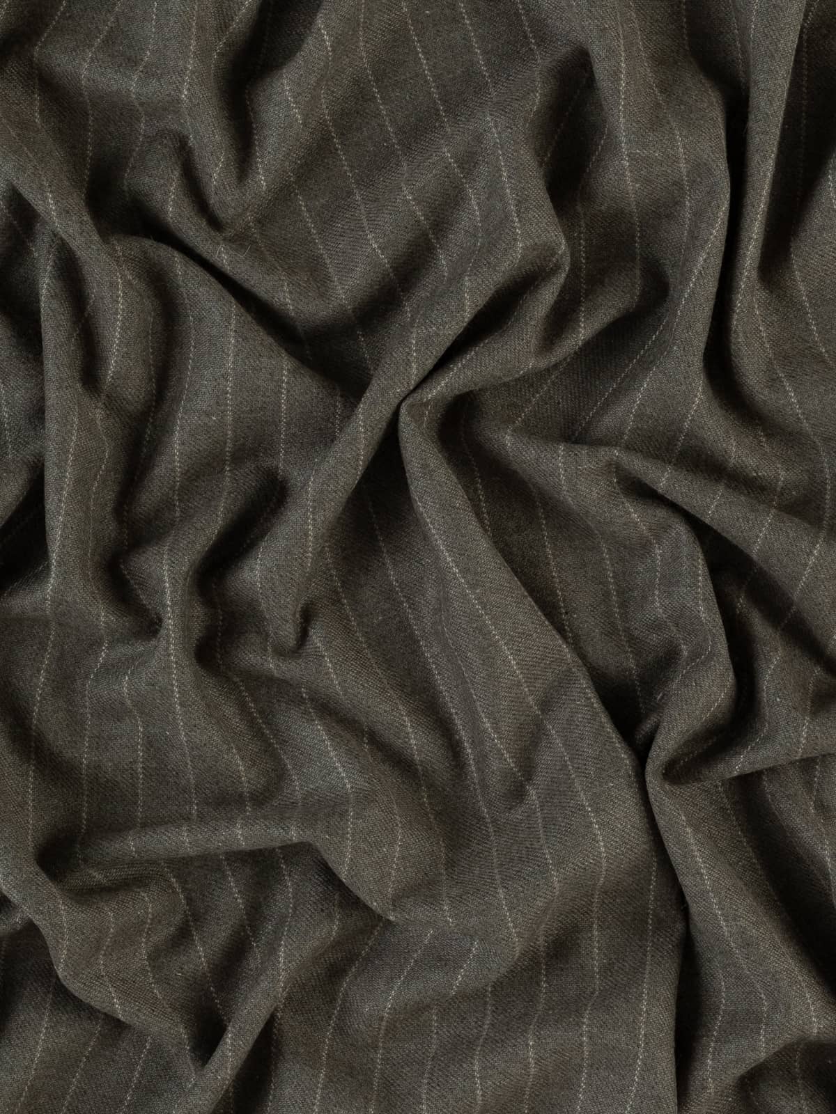A palette of cool beige and stormy grey forms the background to super fine stripes of cream. Combined this creates a classic pin striped appearance.