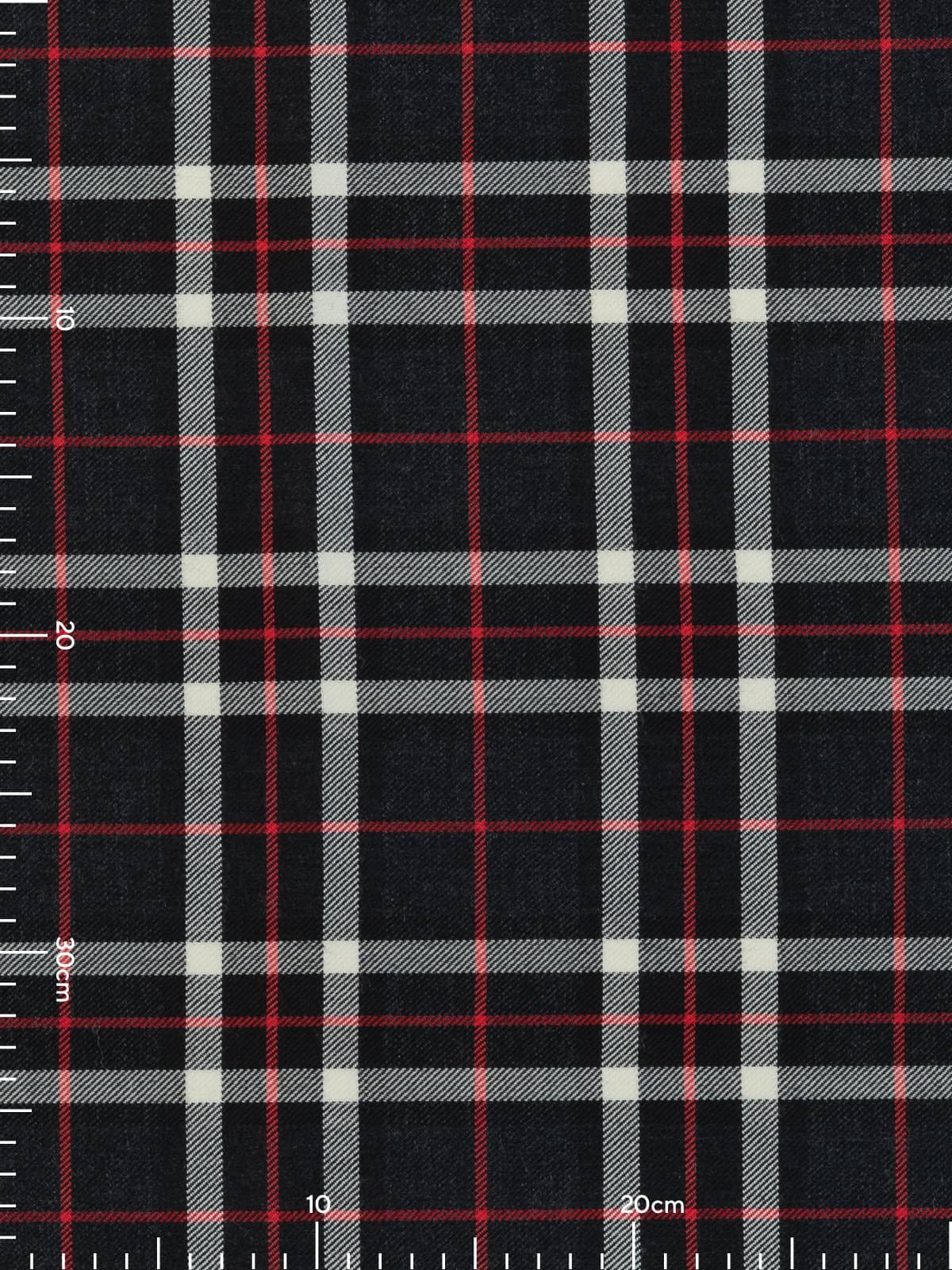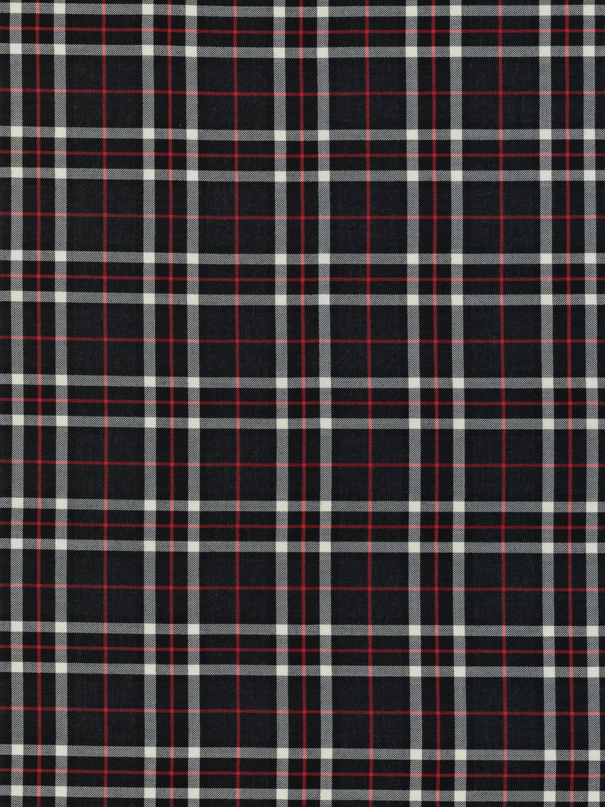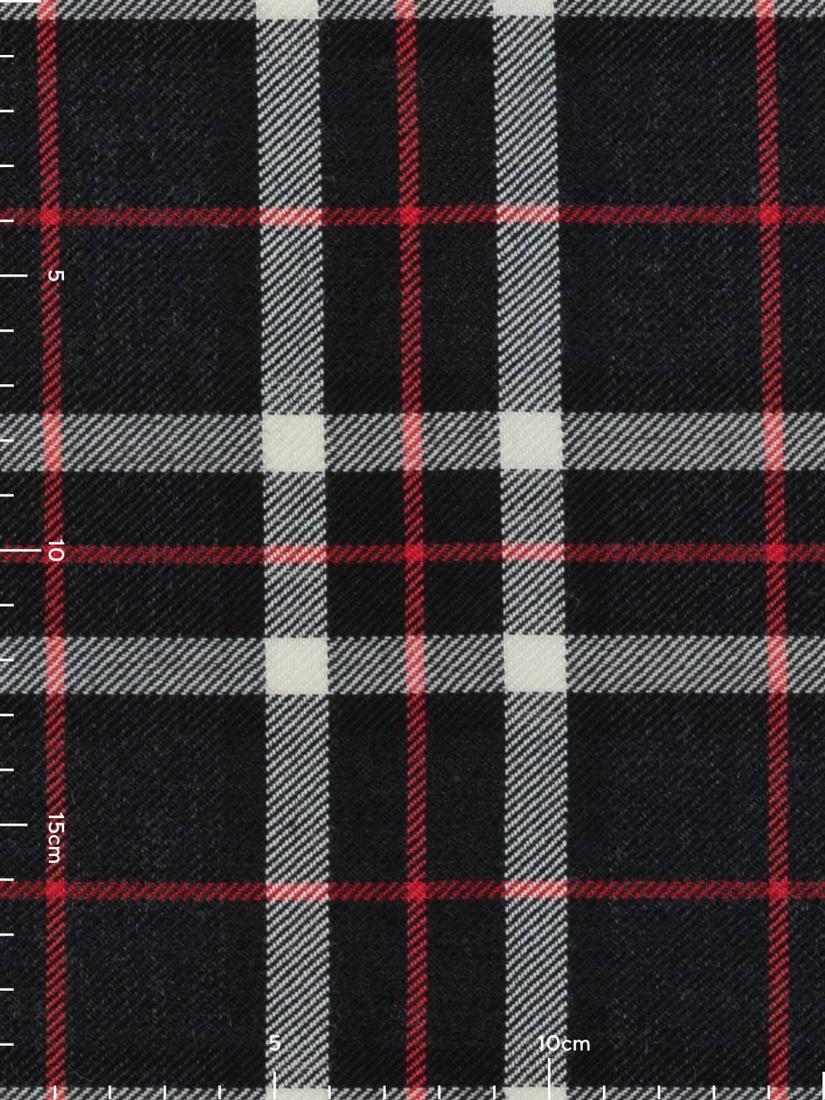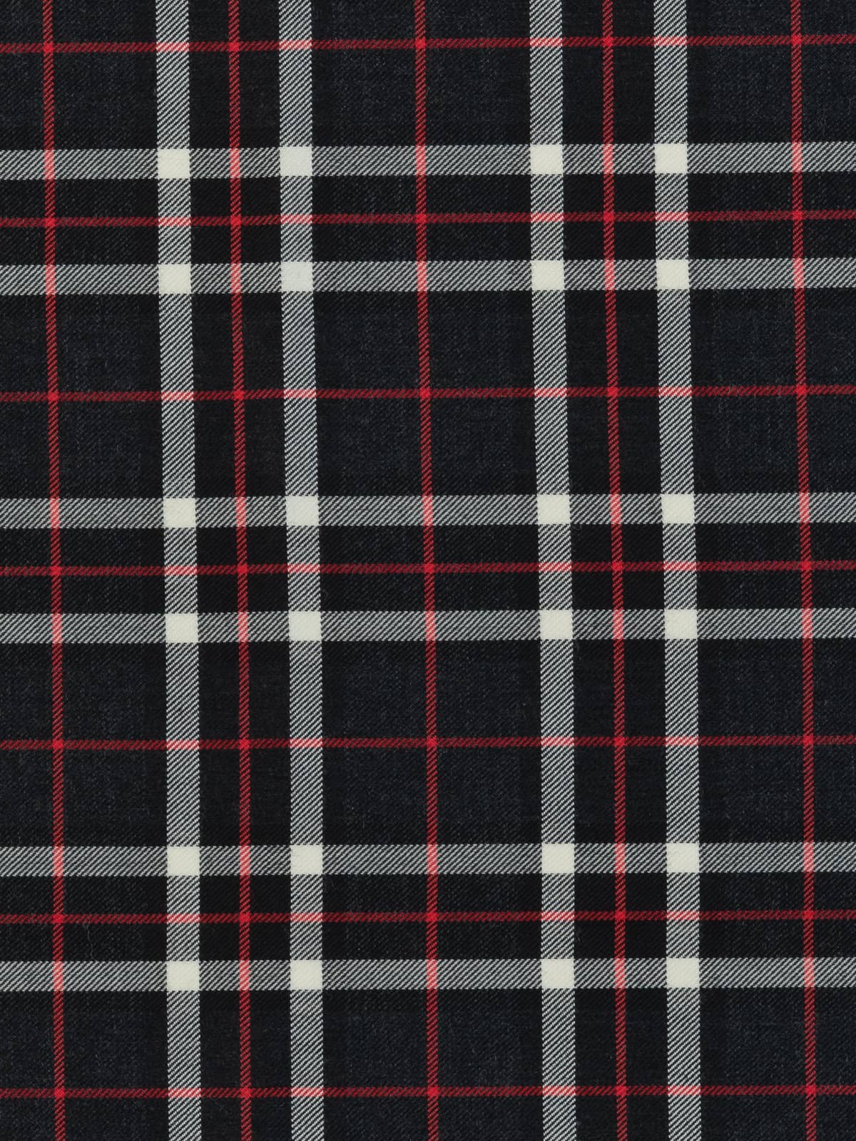 Shades: A cool monochromatic palette built on deep charcoal grey and black, brightened by clean white overchecks. Scarlet red pinstripes provide a sharp contrast, giving the tartan a crisp, modern edge. The greyscale foundation creates a neutral, versatile appearance while retaining strong visual clarity.