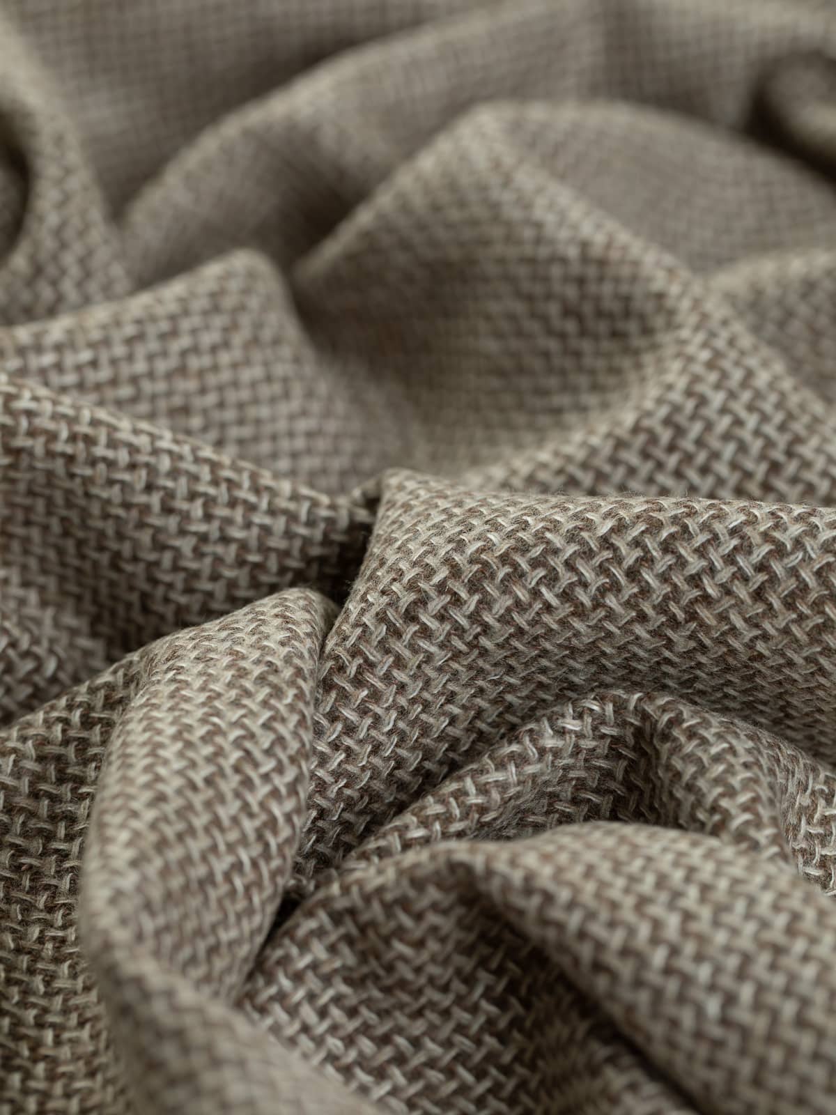 A cosy palette of mid brown, soft beige and a hint of natural white are woven to form this all wool fabric. The separate yarns are expertly used to highlight the weave, which adds a super smart element of depth and detail to the fabric.
