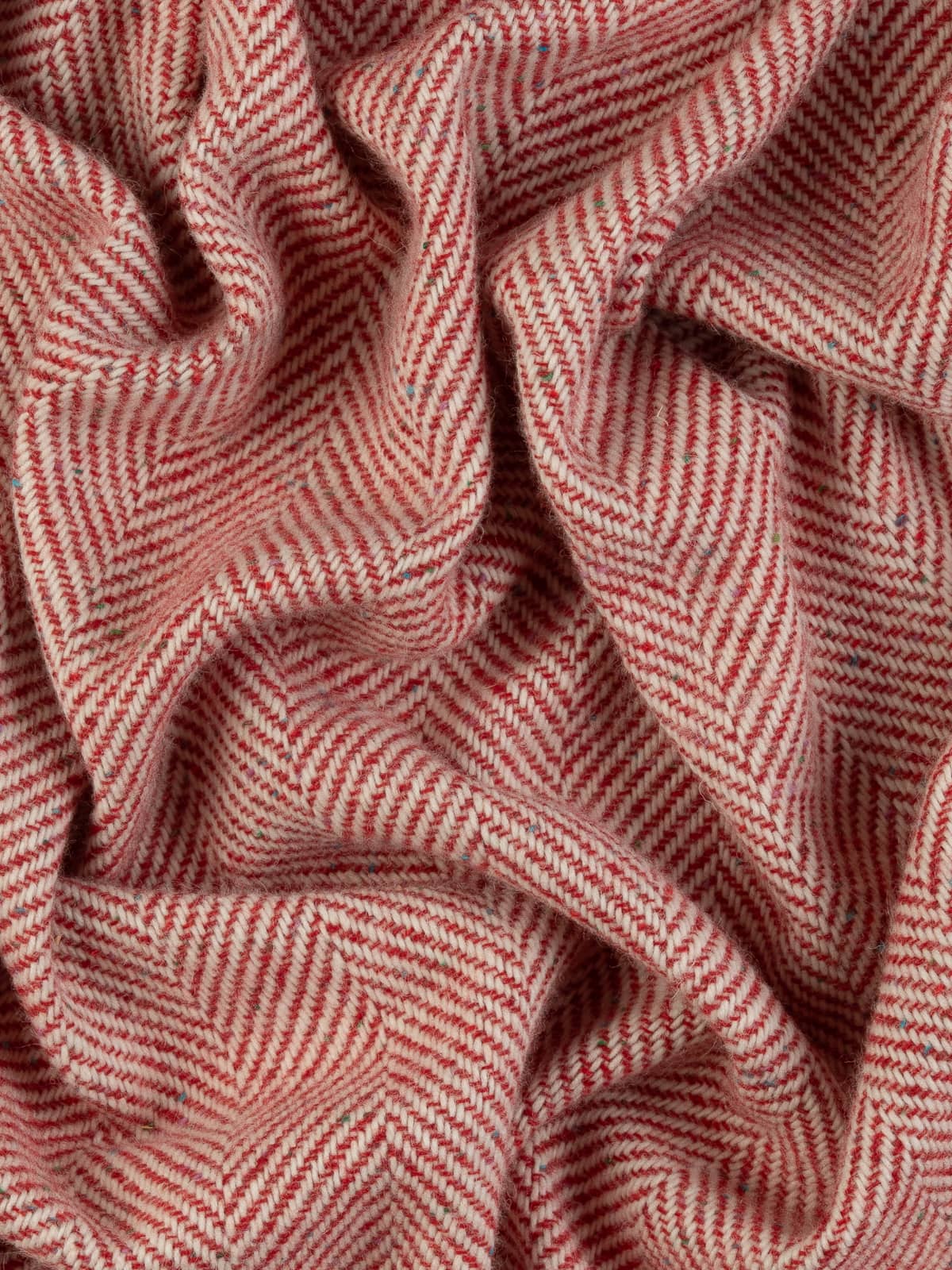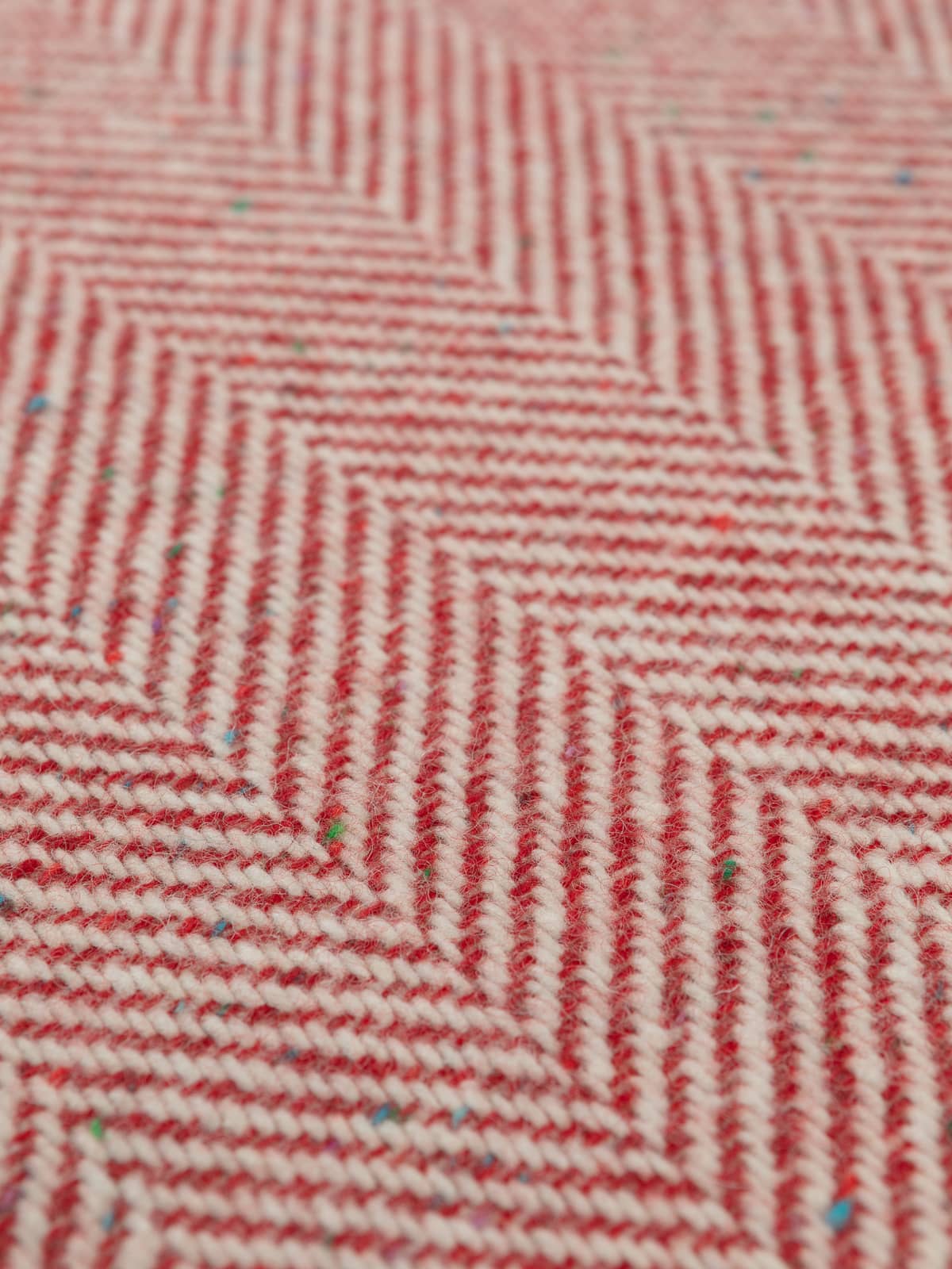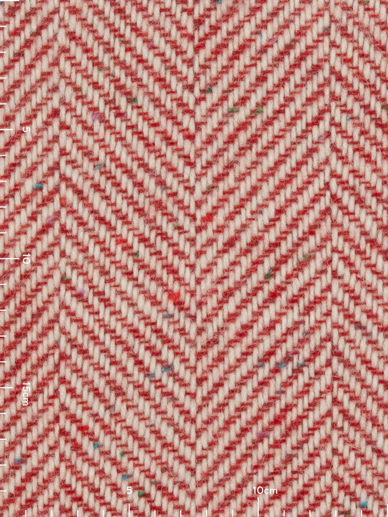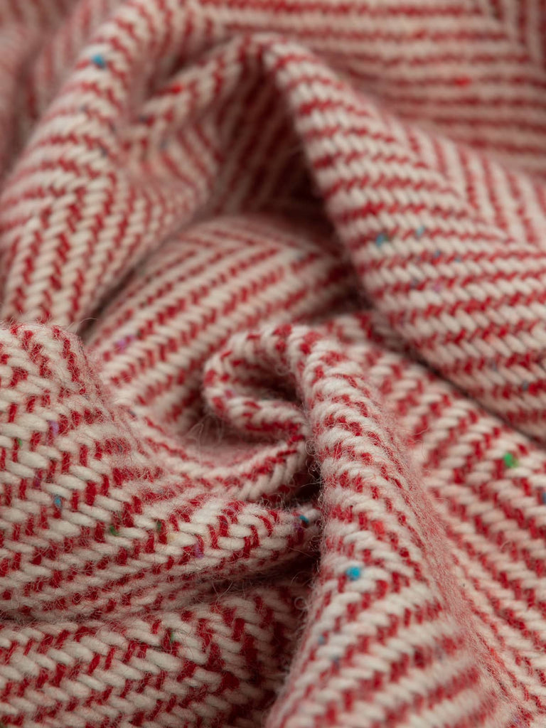 Design: This classic Jumbo Herringbone showcases chunky yarns of natural white through the warp and wonderful Scandi Red - with (Donegal flecks) contrasting perfectly to create the characteristic chevrons of the herringbone weave.