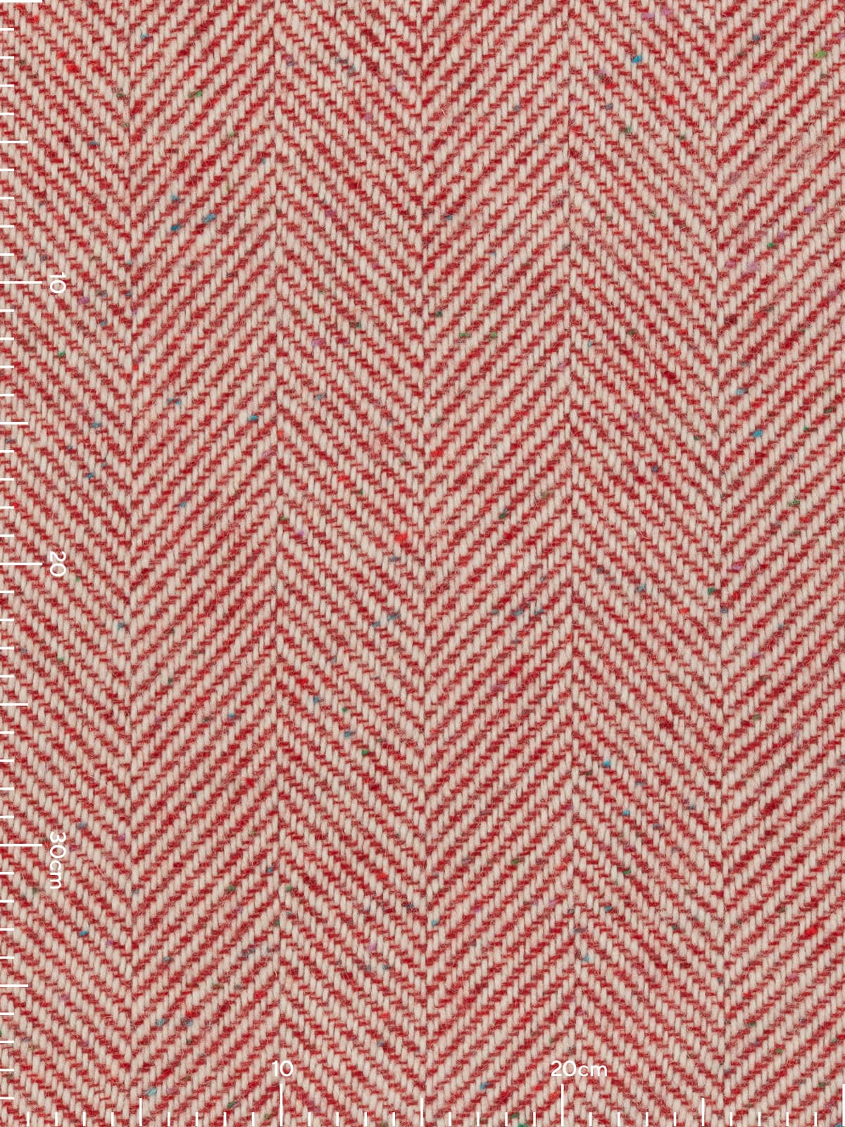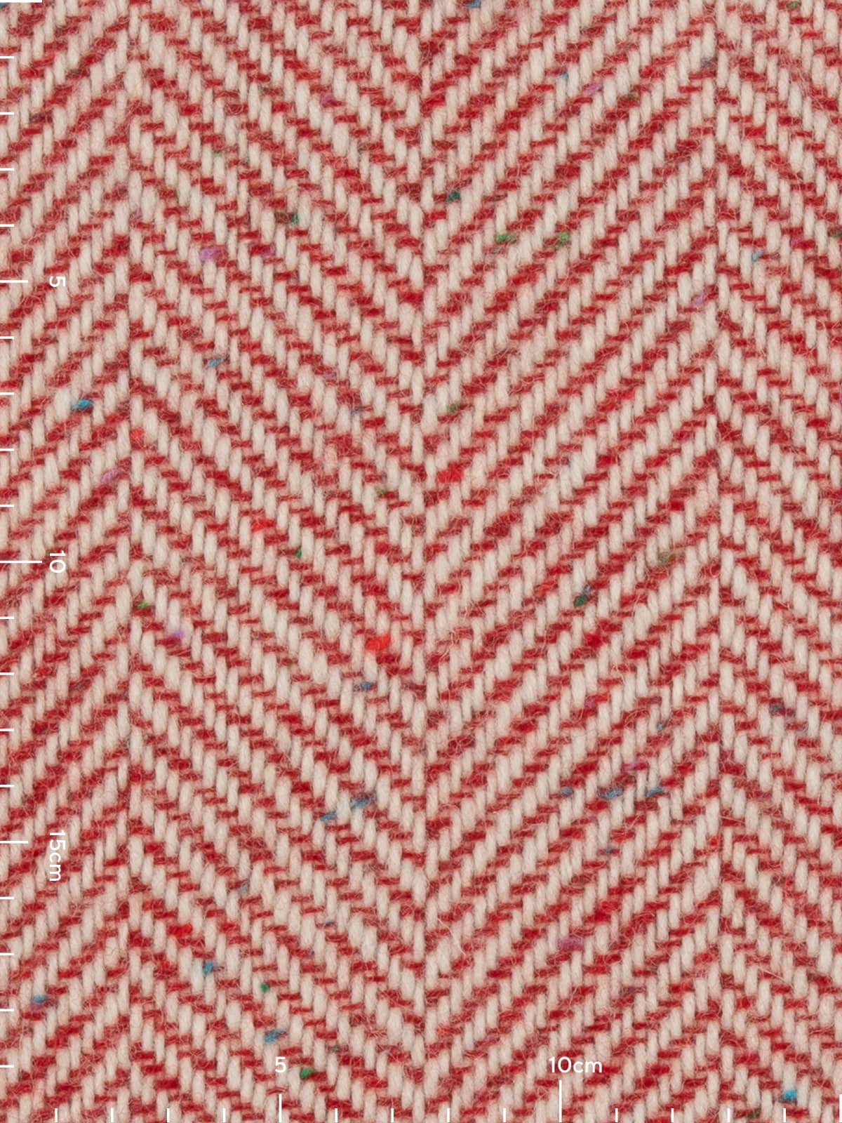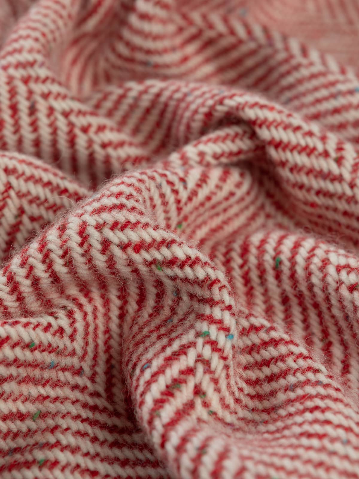 Design: This classic Jumbo Herringbone showcases chunky yarns of natural white through the warp and wonderful Scandi Red - with (Donegal flecks) contrasting perfectly to create the characteristic chevrons of the herringbone weave.