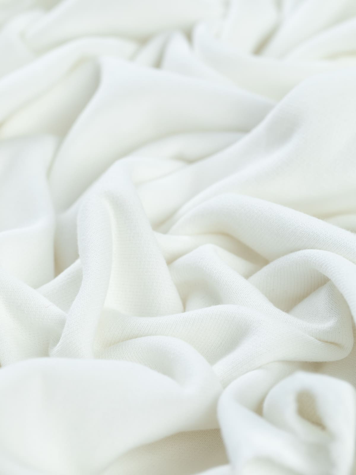 Shades: This tubular knit sweatshirting boasts crisp, clean white hues akin to snowy landscapes.