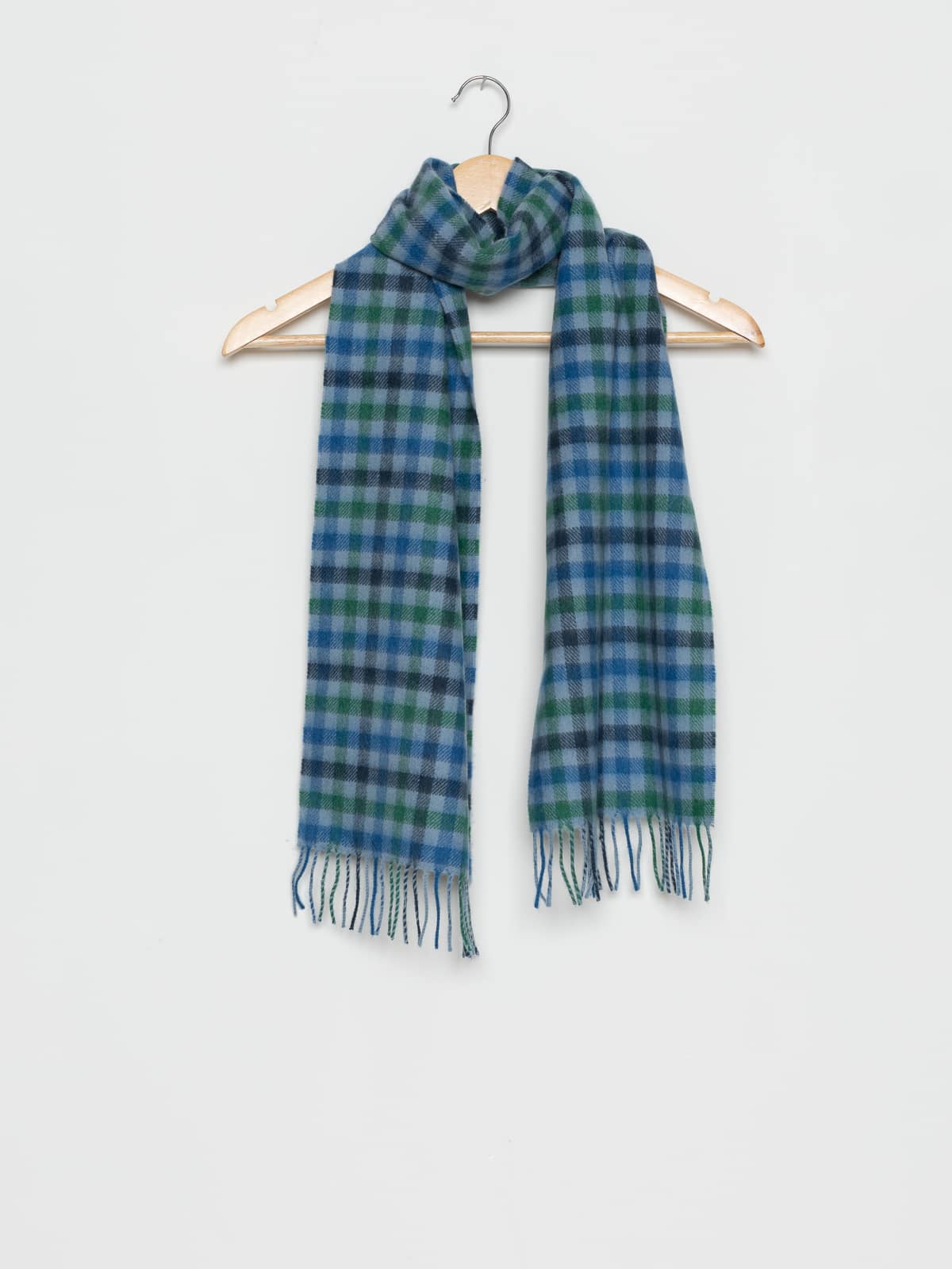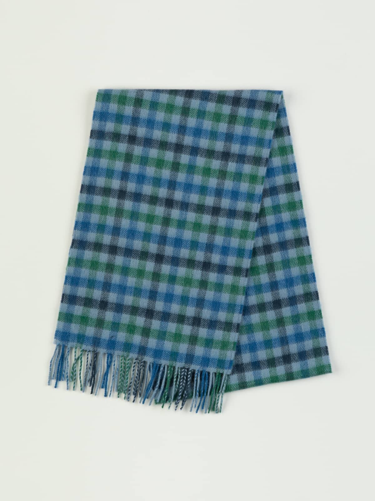 Inspired by the tidal shallows along the Yorkshire coast, this soft check blends seaweed green, rock-slate grey and the clear blues of reflected sky. It captures that fleeting moment when the tide retreats and the pools glimmer with hidden life and shifting light. Crafted from pure cashmere, it’s luxuriously gentle against the skin, a cool coastal breeze woven into a timeless, elegant accessory.