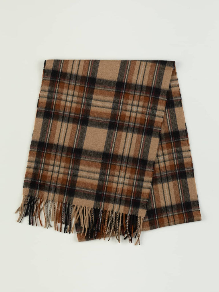 Pure Cashmere Scarf - Noir Caramel Plaid