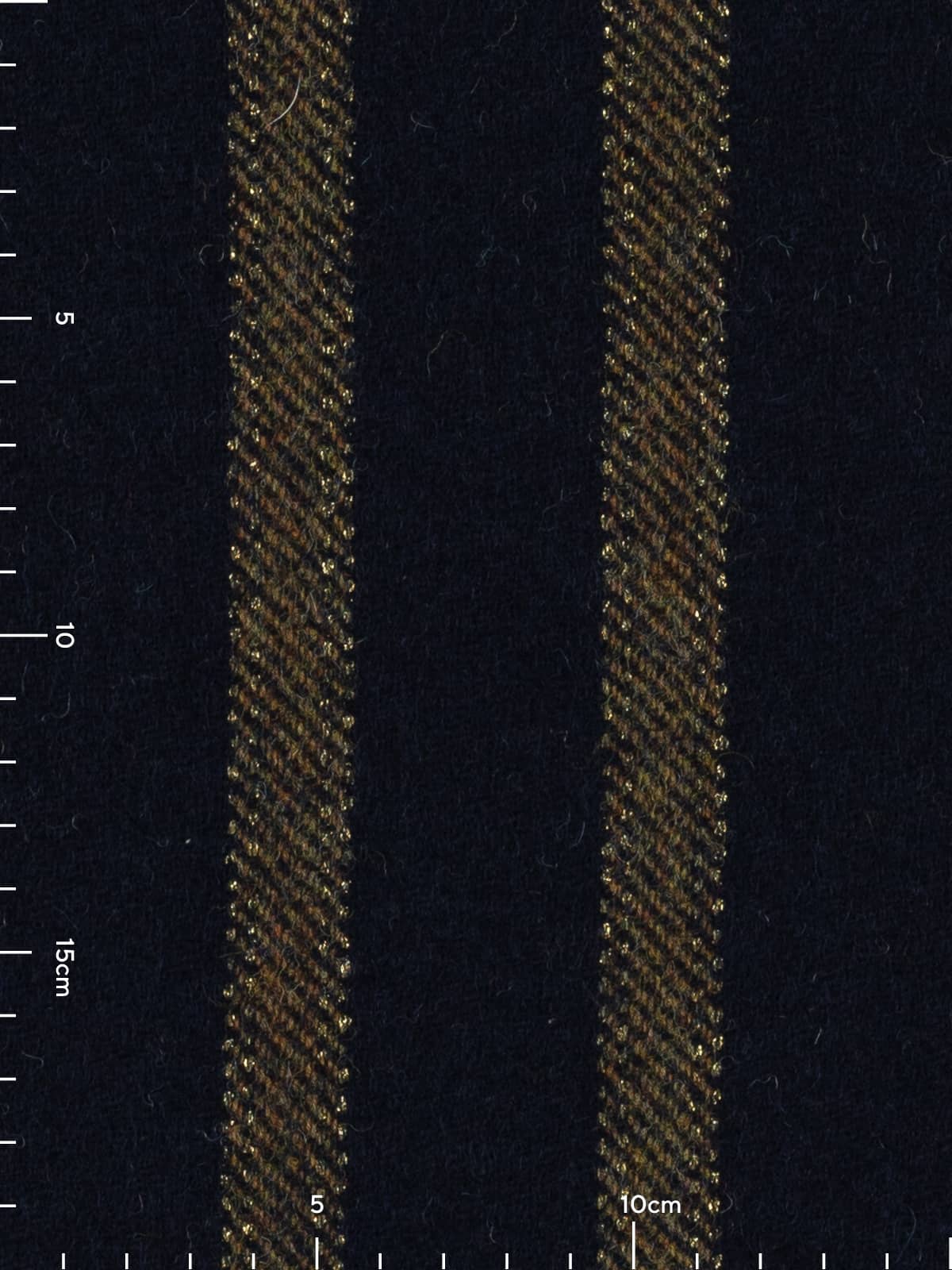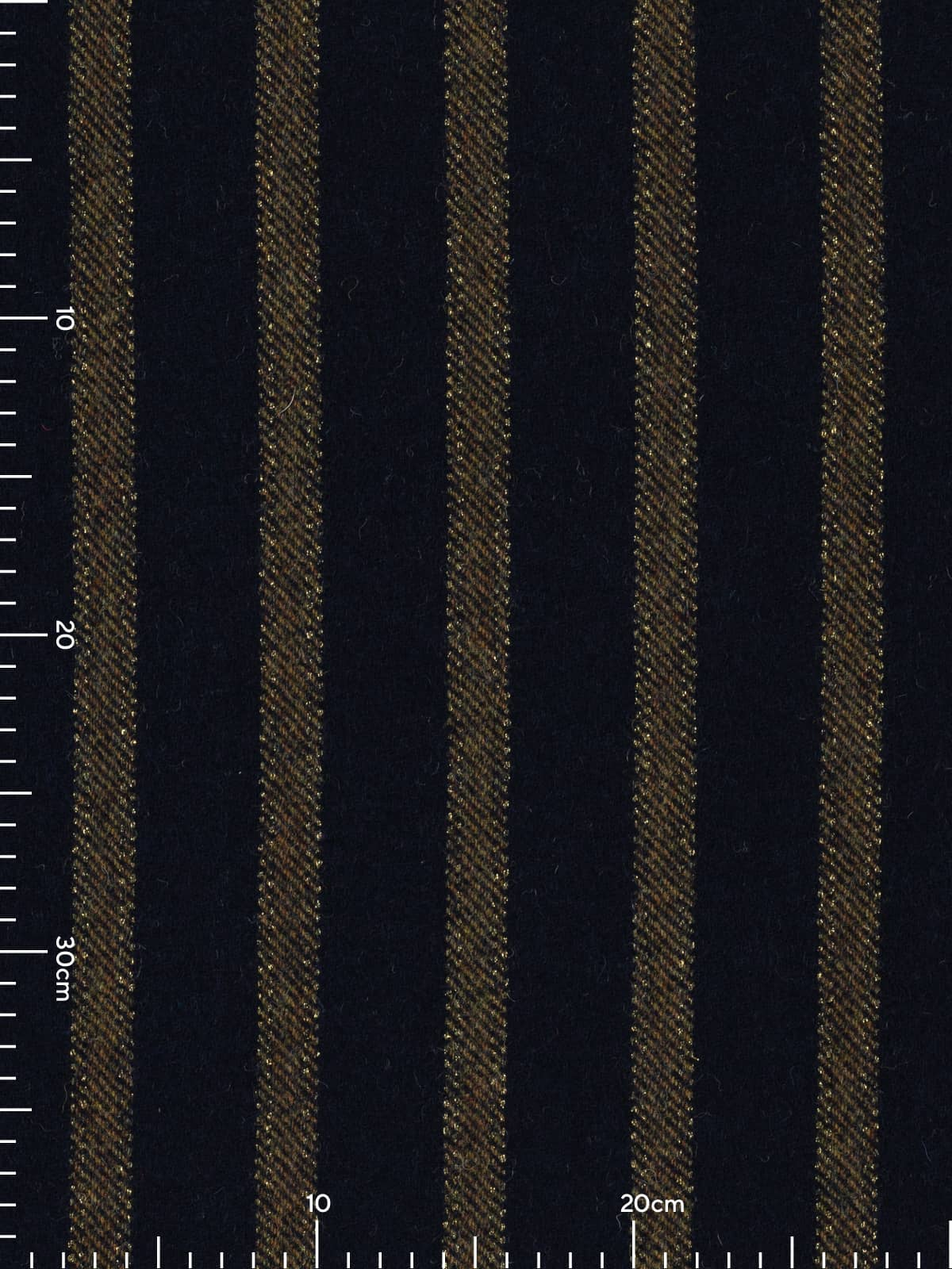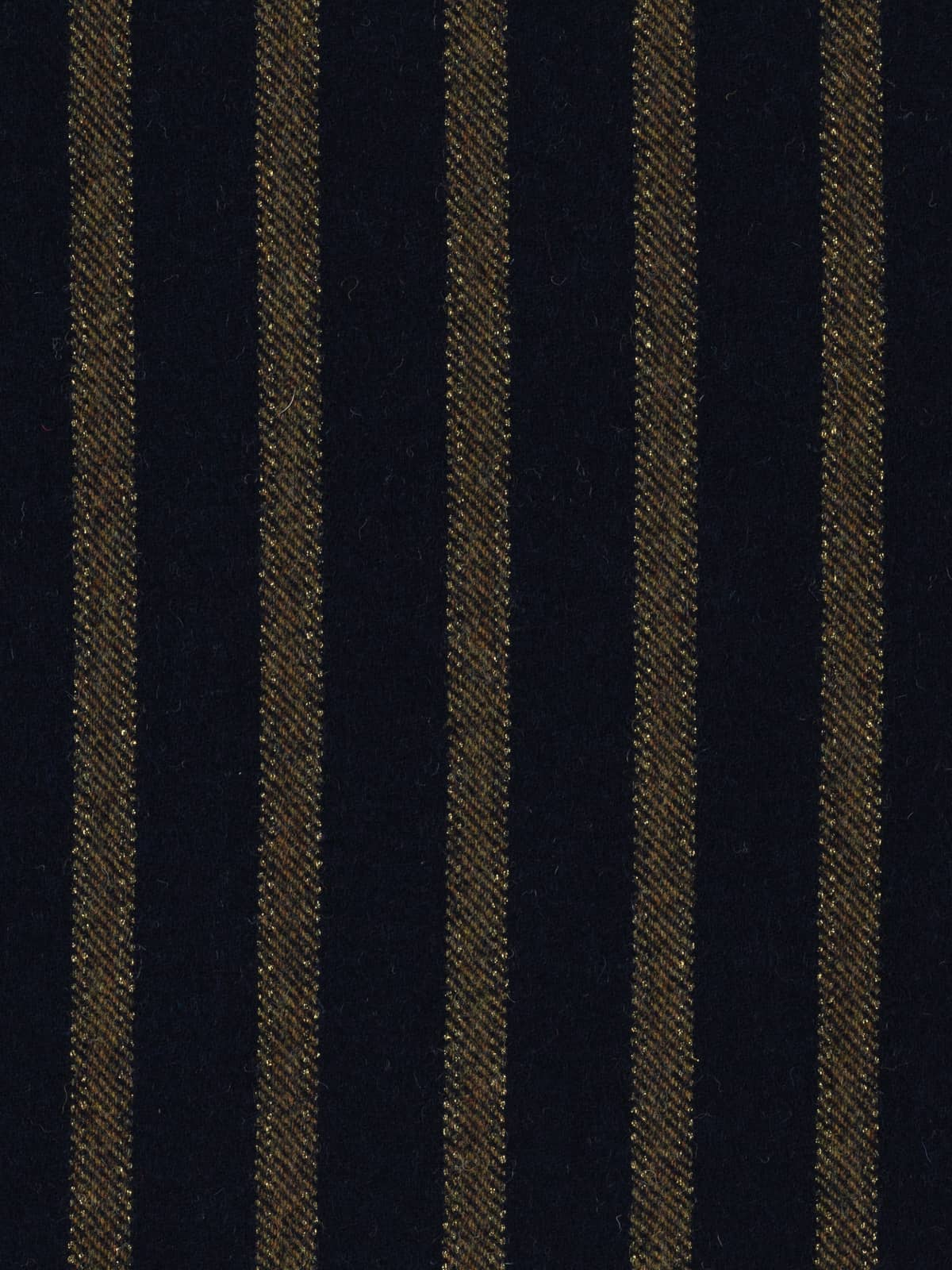 Eclipse Rays boasts a rich base of classic navy, which forms the background for 2cm stripes made up of earthy golden and orange melange tones, framed with 2 fine strips of metallic gold Lurex on the edges of each stripe.