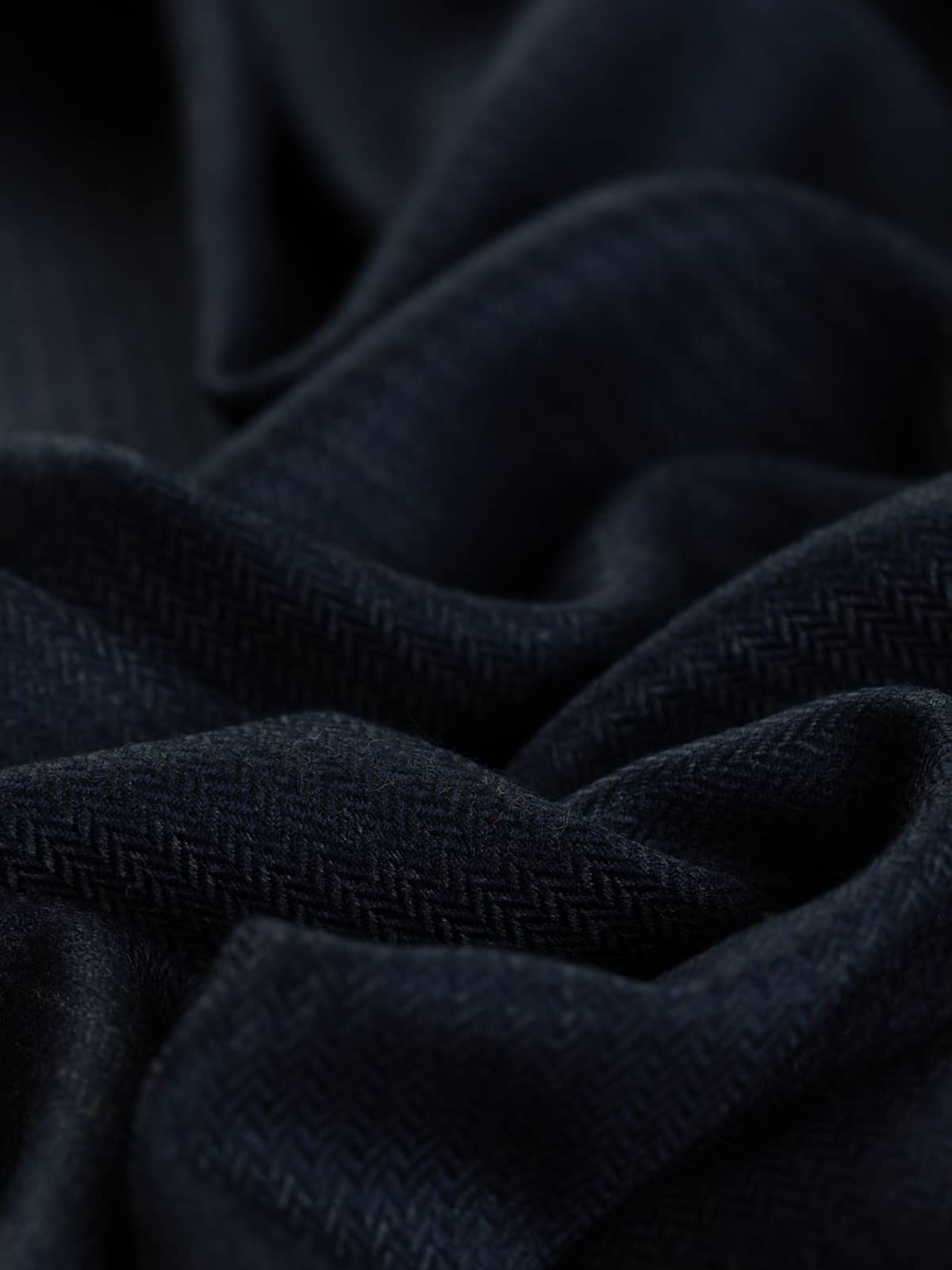 This micro herringbone, all-wool fabric boast a classic palette of lustrous navy and mid grey yarns. The combination of traditional weave and classic palette presents a super smart and stylish appearance.