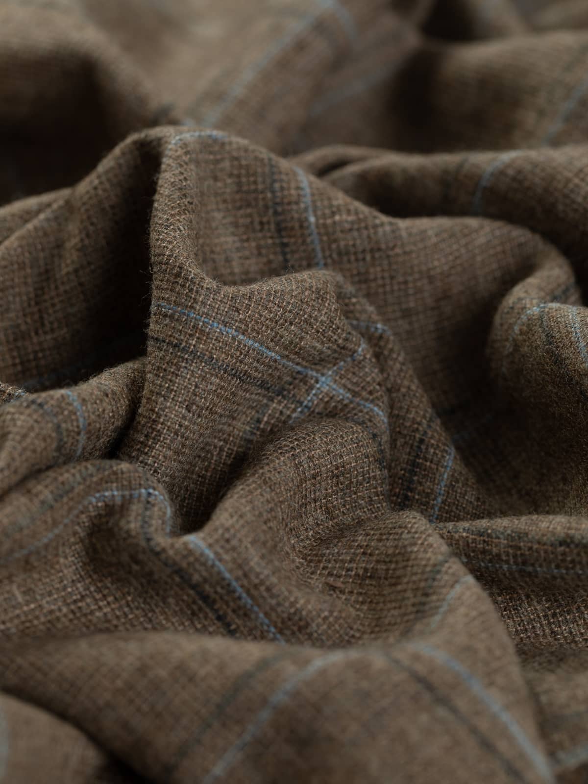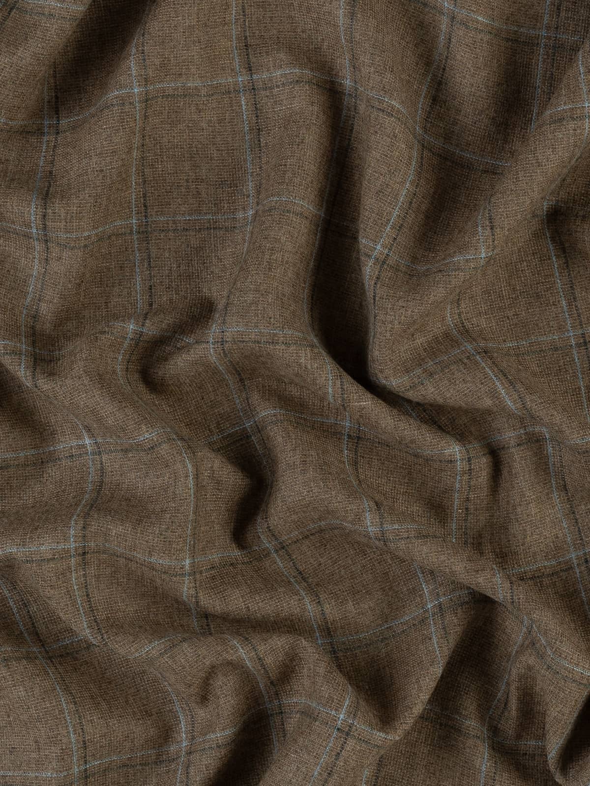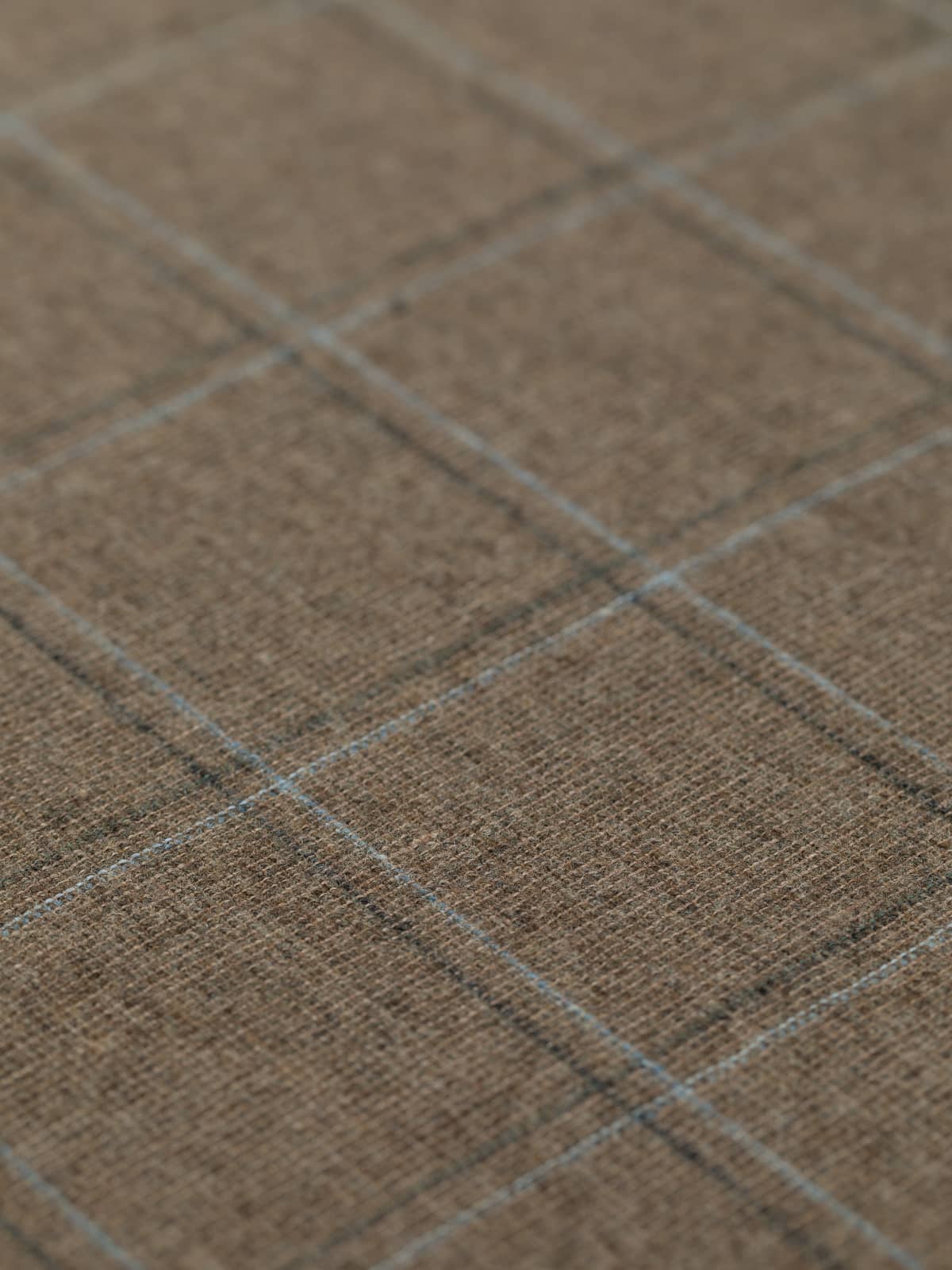 Woodland Windowpanes is formed by a base of natural tawny beige and rich brown.  The finishing touch is a striking, staggered windowpane check in sky blue & shadowing greyish black.