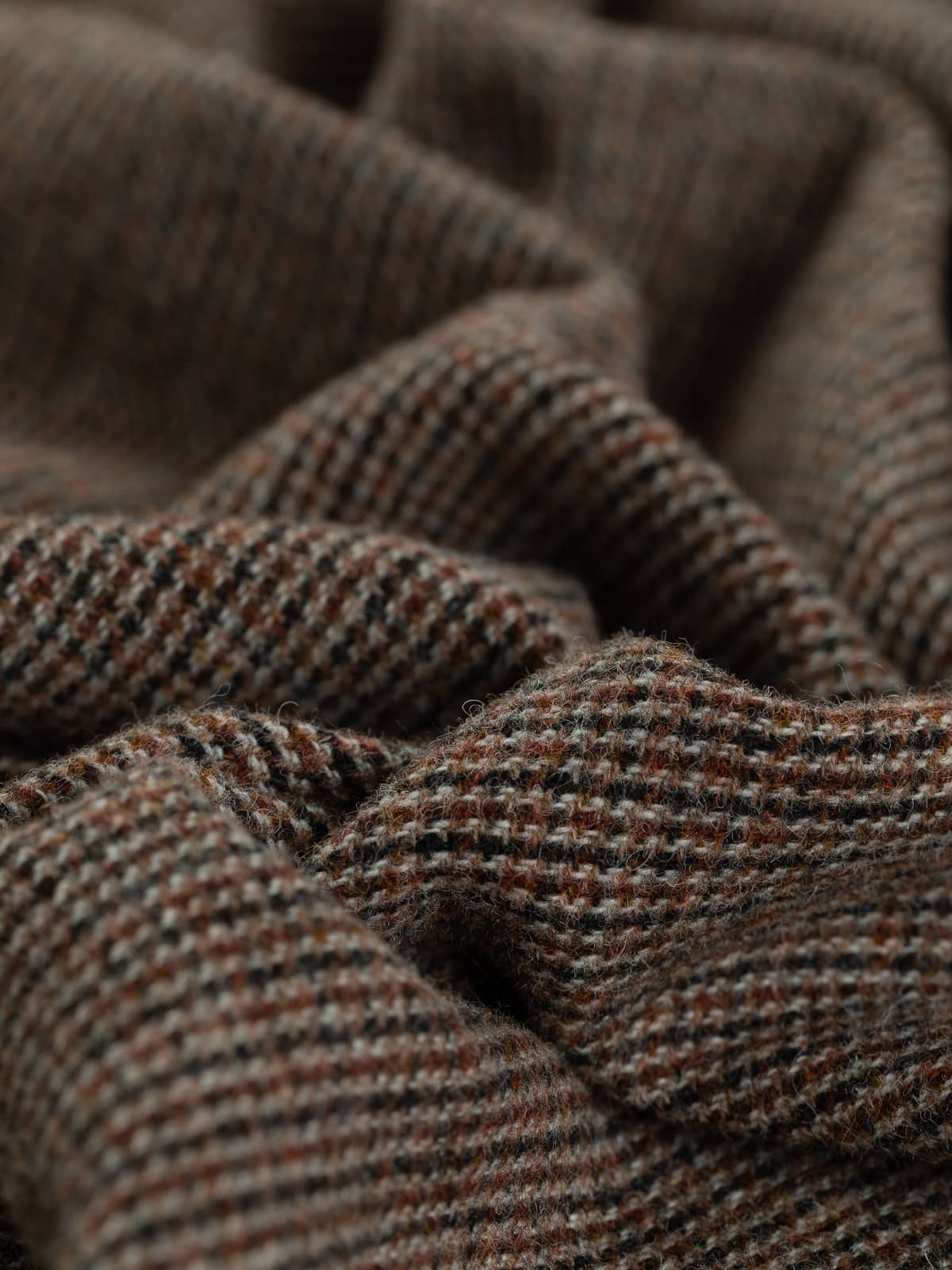 Texture: These light-weight, closely woven wool fabrics feature a traditional, lightly brushed, and fibrous cosy wool texture, offering the classic resilience and durability expected from a high wool content. Naturally shower-resistant and temperature-regulating, they trap a layer of warm air to keep you comfortable while allowing airflow for natural breathability.