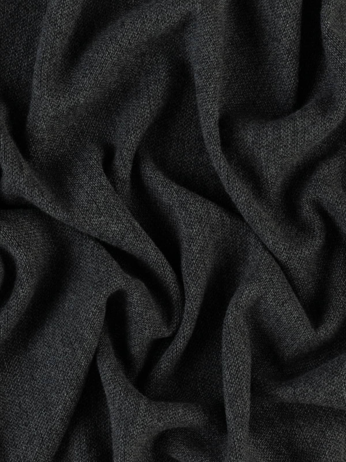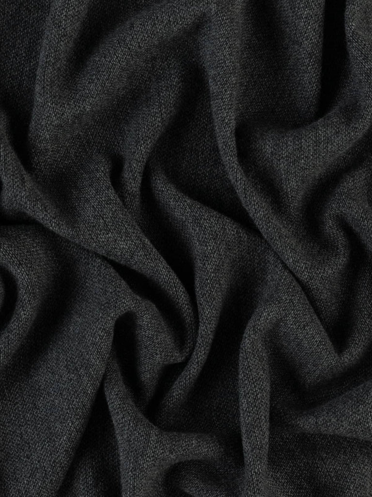 This cosy all wool fabric is created from yarns of black and storm grey, this base is accentuated with silvery striations throughout the weave.