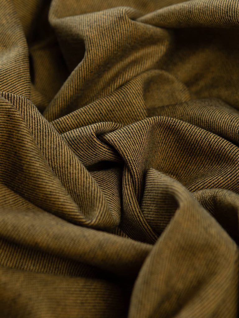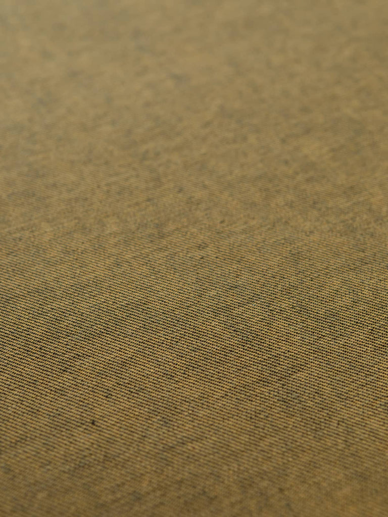 Texture: Mustard Shot boasts a firm yet pleasing cotton hand, with a subtly textured twill face and a smooth reverse. Both sides display the signature diagonal weave lines that emphasise durability and structure.