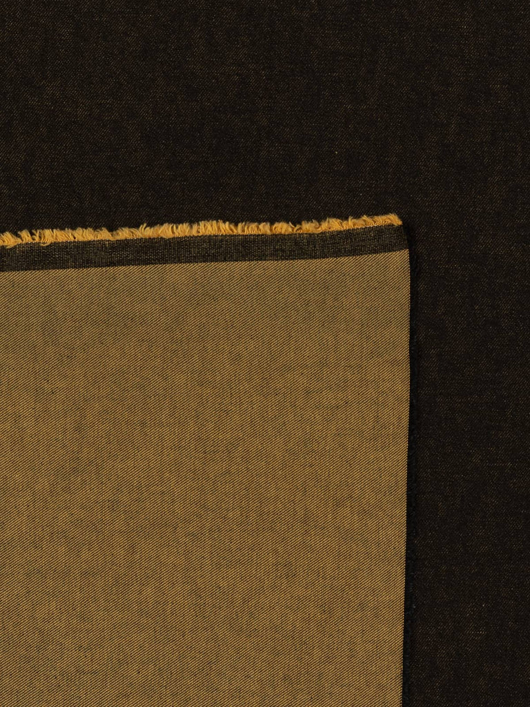 Shades: This striking two-tone denim presents a black interwoven with warm, golden mustard undertones. The contrast between the dark warp and the rich yellow weft produces a sophisticated shot effect that offers differing looks on the face and the reverse.