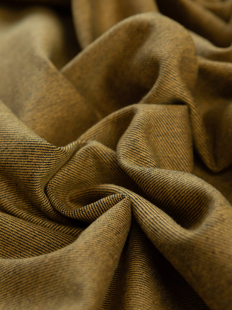 Texture: Mustard Shot boasts a firm yet pleasing cotton hand, with a subtly textured twill face and a smooth reverse. Both sides display the signature diagonal weave lines that emphasise durability and structure.