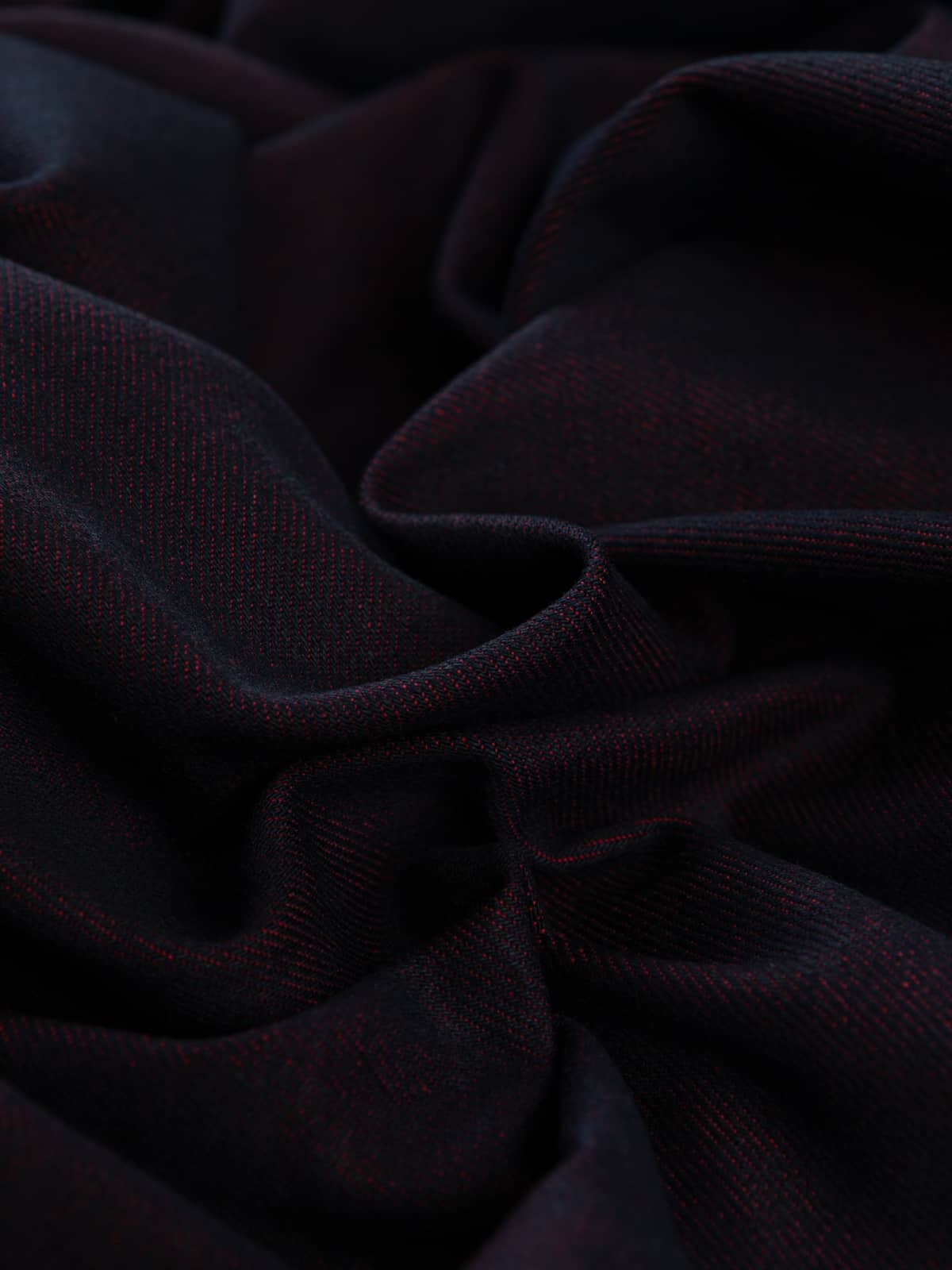 Shades: This striking two-tone denim presents a deep navy face interwoven with warm, juicy raspberry red undertones. The contrast between the dark warp and the pinky-red produces a sophisticated shot effect that offers differing looks on the face and the reverse.