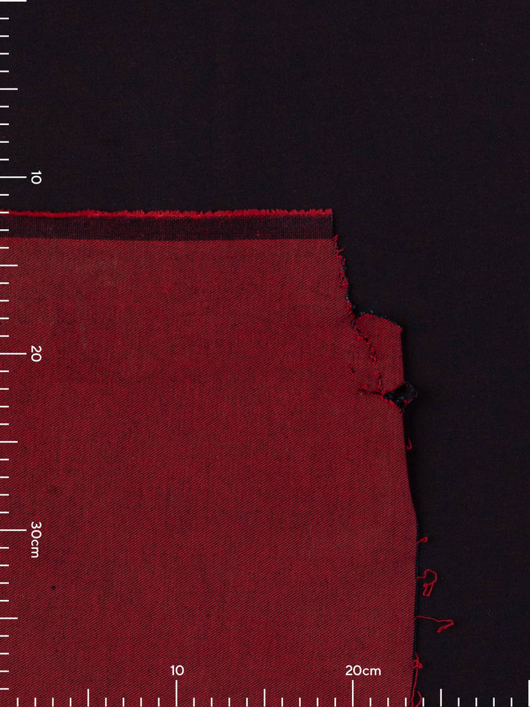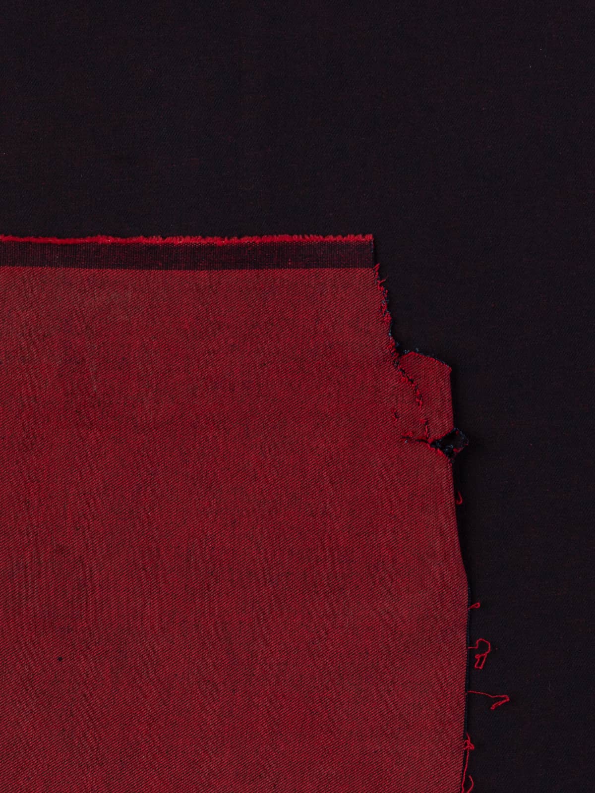 Design: Dark navy cotton warps are woven with raspberry weft yarns to create a reversible fabric, with one side showcasing a deep, inky denim tone and the reverse offering a bright pop of pinky-red. This dual nature gives the fabric remarkable versatility, ideal for garments that highlight both tones through turned edges, cuffs, and interior details.