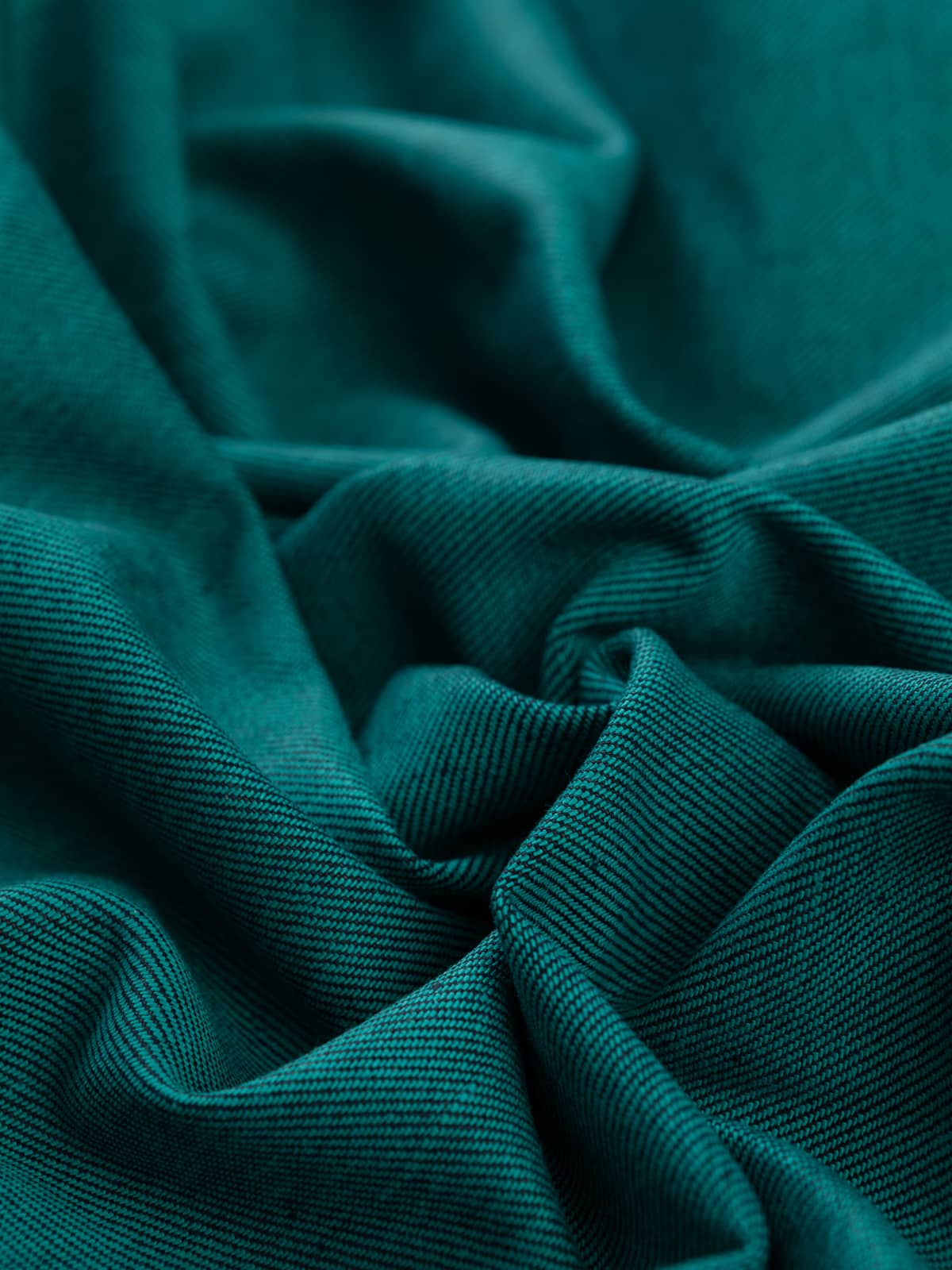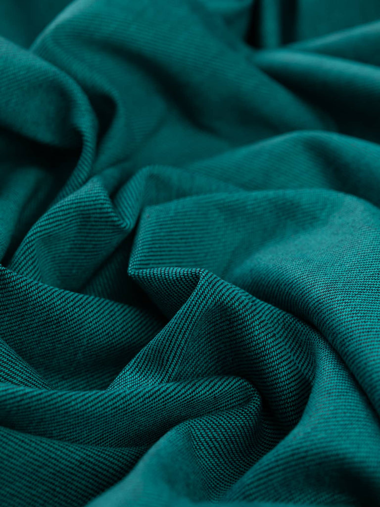 Texture: Teal Shot boasts a firm yet pleasing cotton hand, with a subtly textured twill face and a smooth reverse. Both sides display the signature diagonal weave lines that emphasise durability and structure.