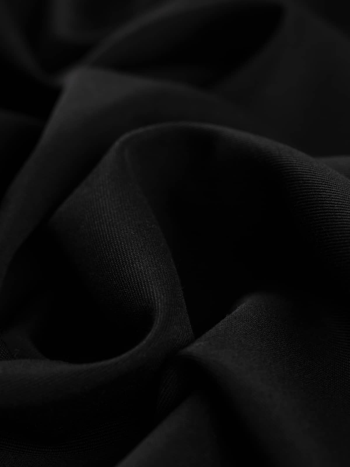 Texture: Serious Black has an even, fine surface texture, thanks to its close gabardine twill weave. The wool content is noticeable to the touch, yet not itchy or irritating. It feels cool initially, but it will naturally adjust to the wearer's body temperature. The polyester content adds durability and makes it easier to care for.
