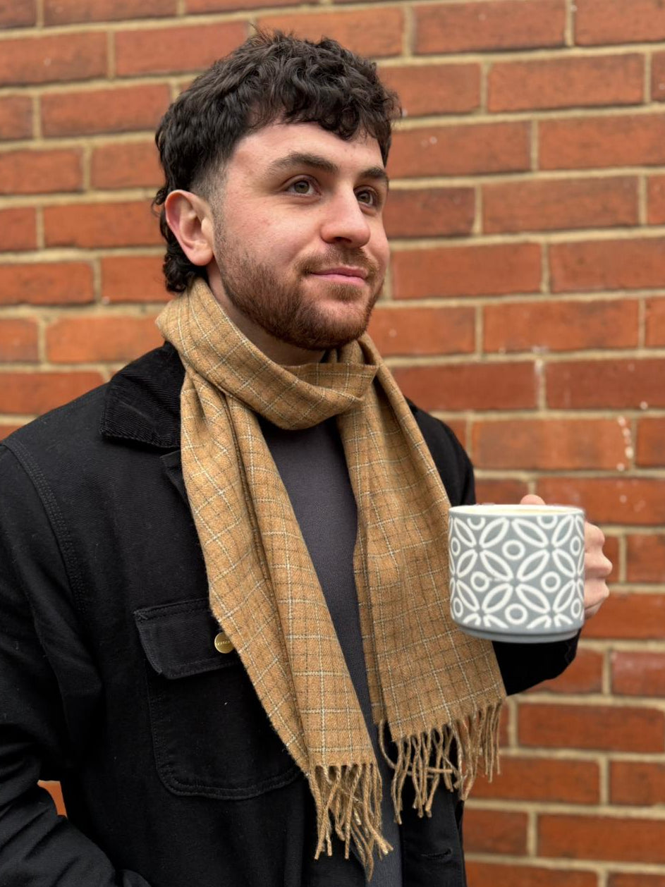 Small 100% Lambswool Scarf - Gingerbread Check