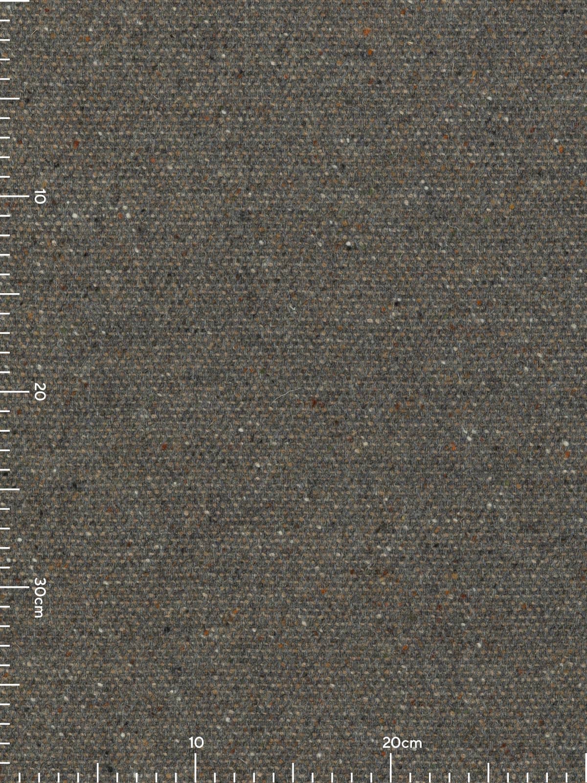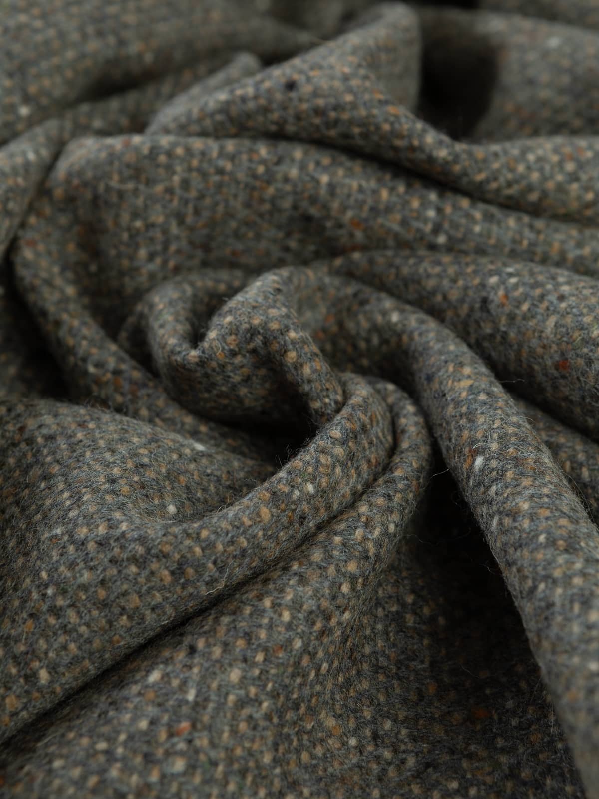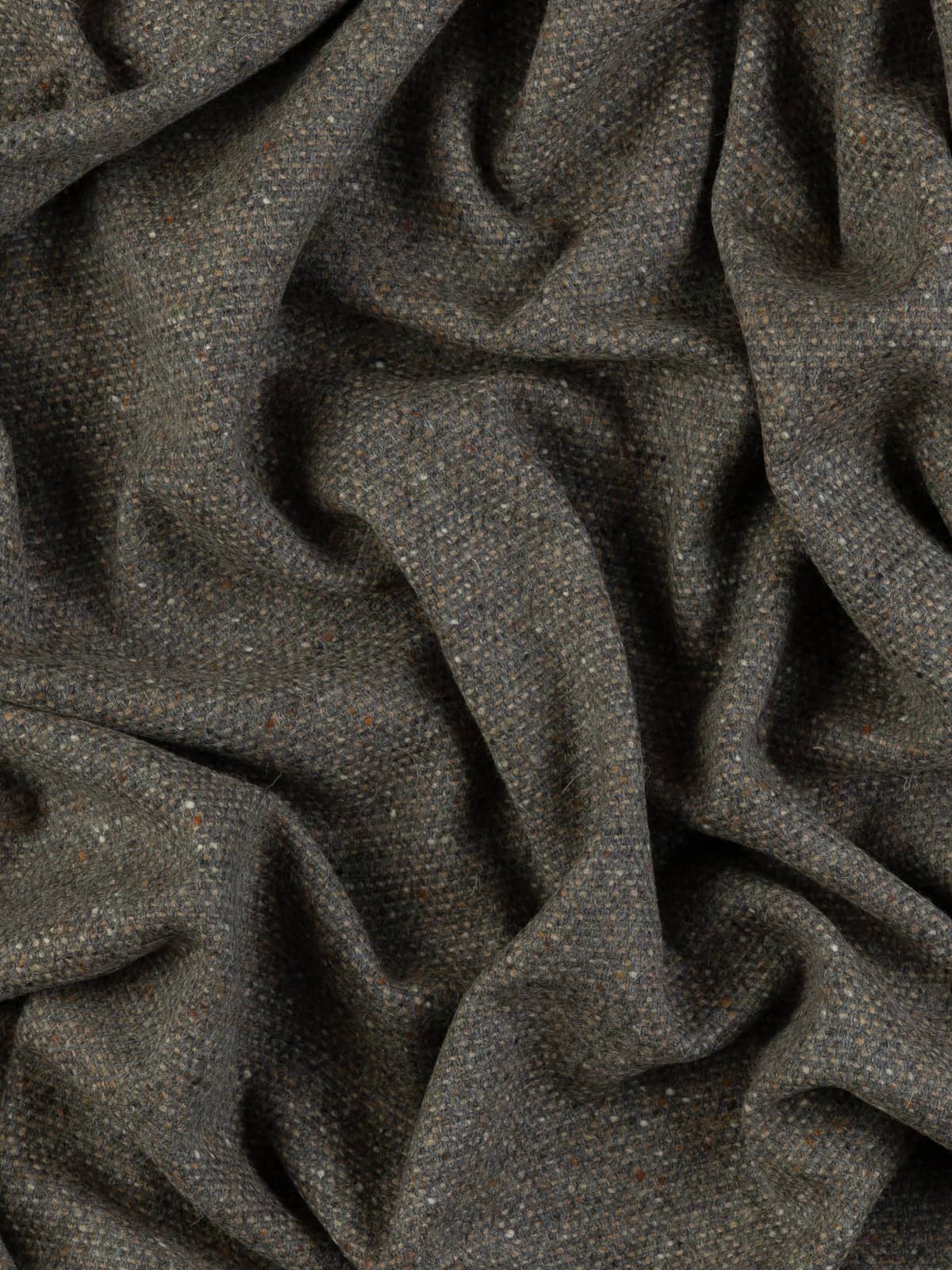 Design: Look closely, and a classic herringbone weave can be perceived within this Lambswool Donegal Tweed. The flecked nature of the Donegal yarns sitting against the grey melange yarns of the weft creates an obscured effect to the weave.