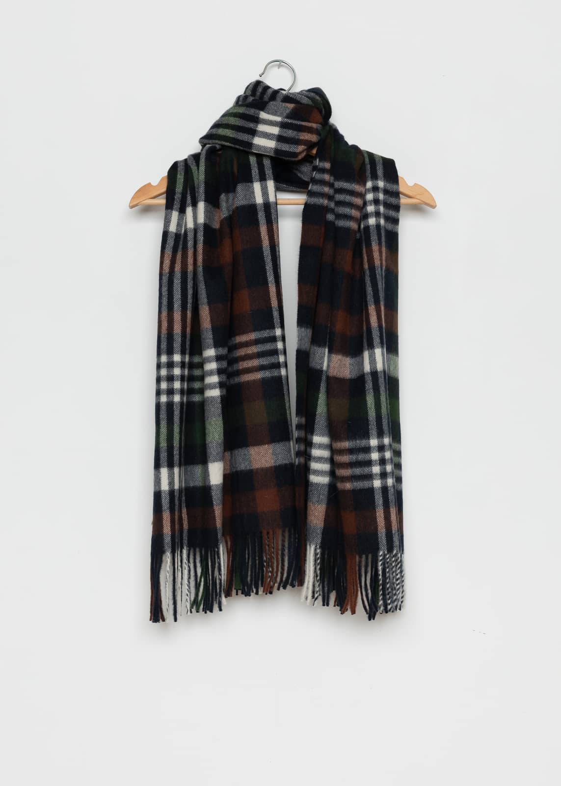 Earthy and deep, this check weaves darkest navy with moonlight white, enriched by hazelnut and woodland browns. The tone evokes quiet observation huts and forest stillness. Grounded, masculine, and softly weathered, with a natural authenticity in every shade.