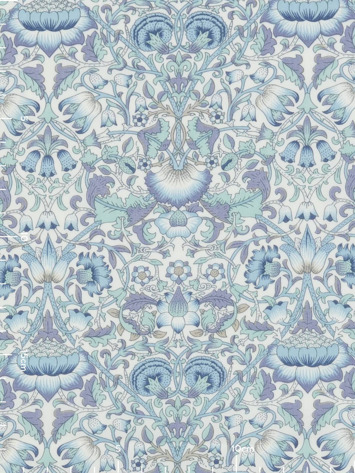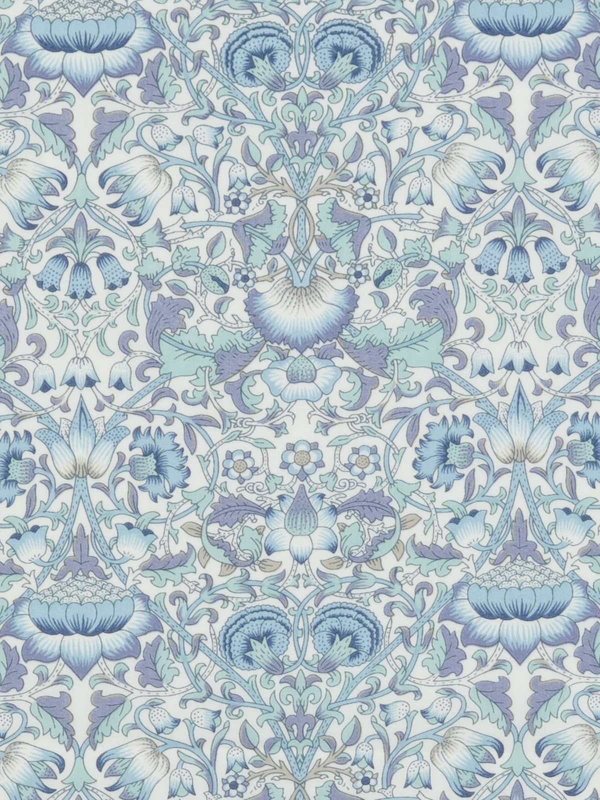Design: Lodden was originally designed by William Morris in 1884. It features a design of historical botanical icons, from lilies and carnations to Tudor roses and Acanthus leaves, all artfully intertwined in true Arts and Crafts style, set against a classic white base.