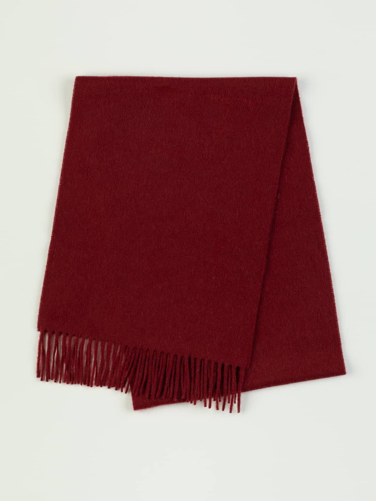 This luxurious cashmere scarf comes in the deepest, richest dried cranberry red, a hue that sits between crushed cranberries and Bordeaux wine. The Crimson Reserve tone is warm and indulgent, reminiscent of mulled wine swirling in a candlelit glass. Evoking quiet strength and understated luxury rather than flamboyant decadence, this colour carries both passion and restraint, making it effortlessly versatile, easily styled up or down to suit your mood and outfit.