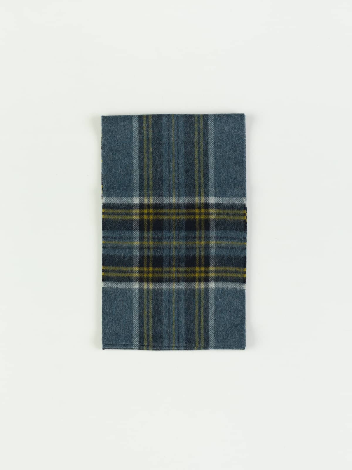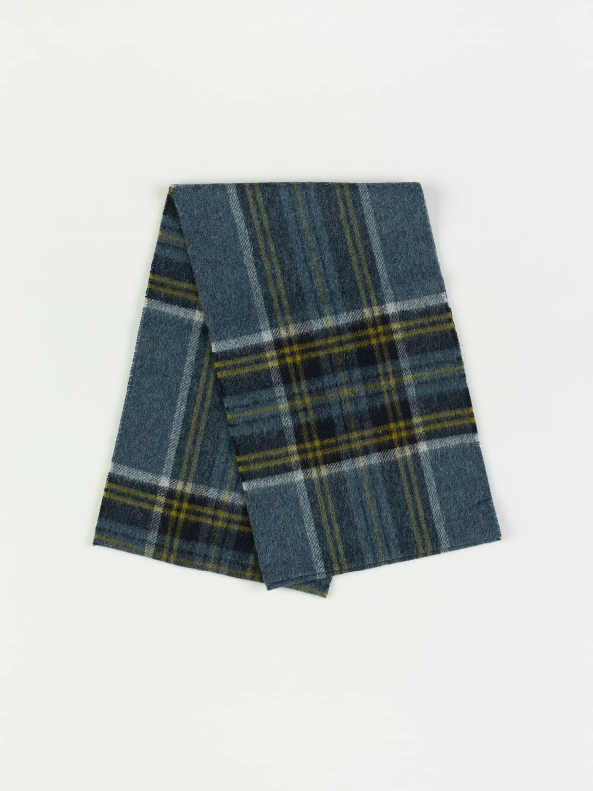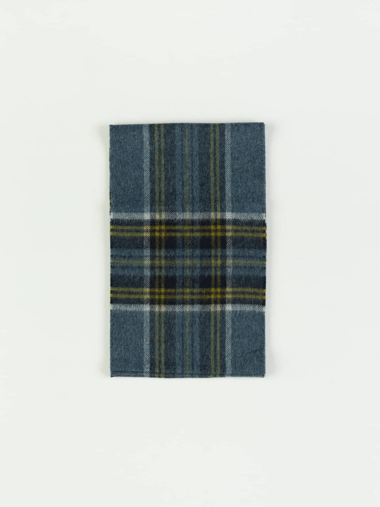 This heritage-woven merino wool infinity scarf features a tranquil palette reminiscent of sunlight glinting across calm waters, with a melange base of lapis blue and navy framed by navy overchecks and bright accents of yellow and white. Lightly brushed and stitched into a soft, secure loop with an overlocked, topstitched seam, it twists effortlessly into cosy, stay-put layers of merino wool that cocoon the neck in warmth without ever slipping loose.
