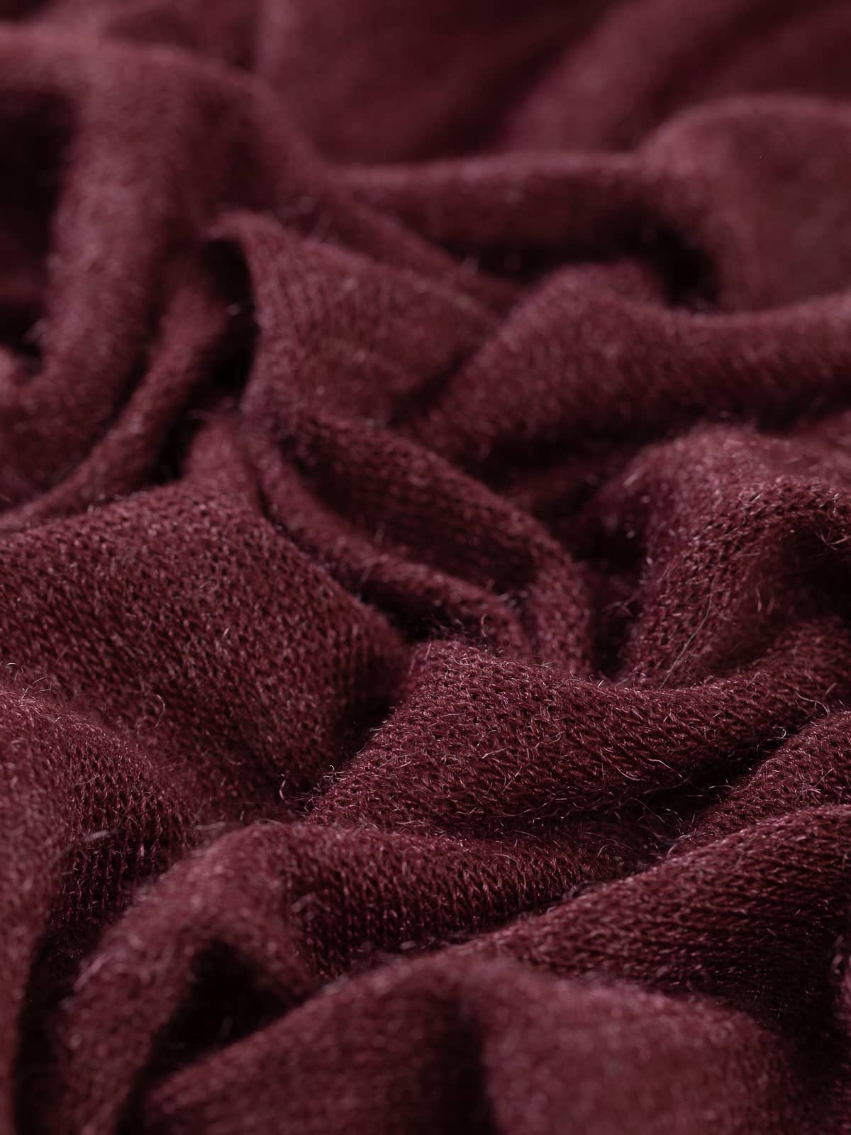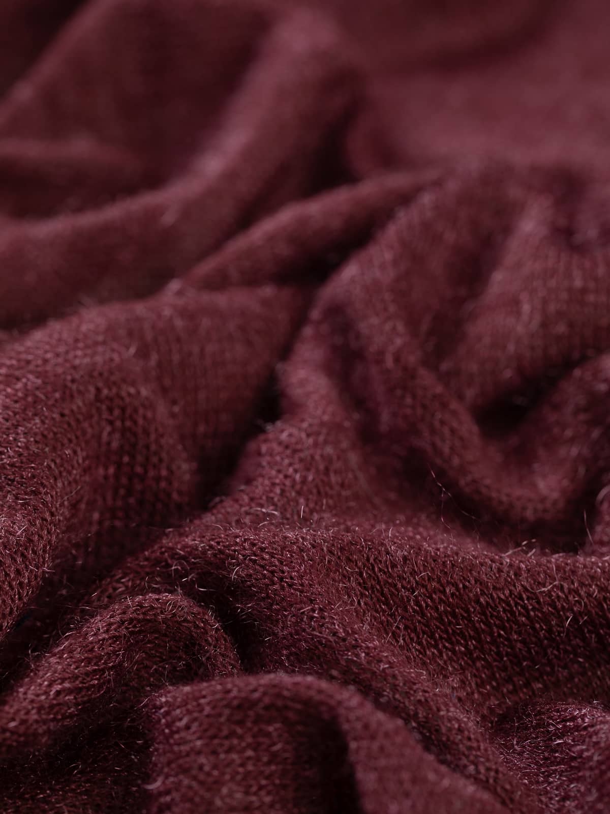 Design: A solid, all-over burgundy sweater knit with shimmering fibres running throughout.