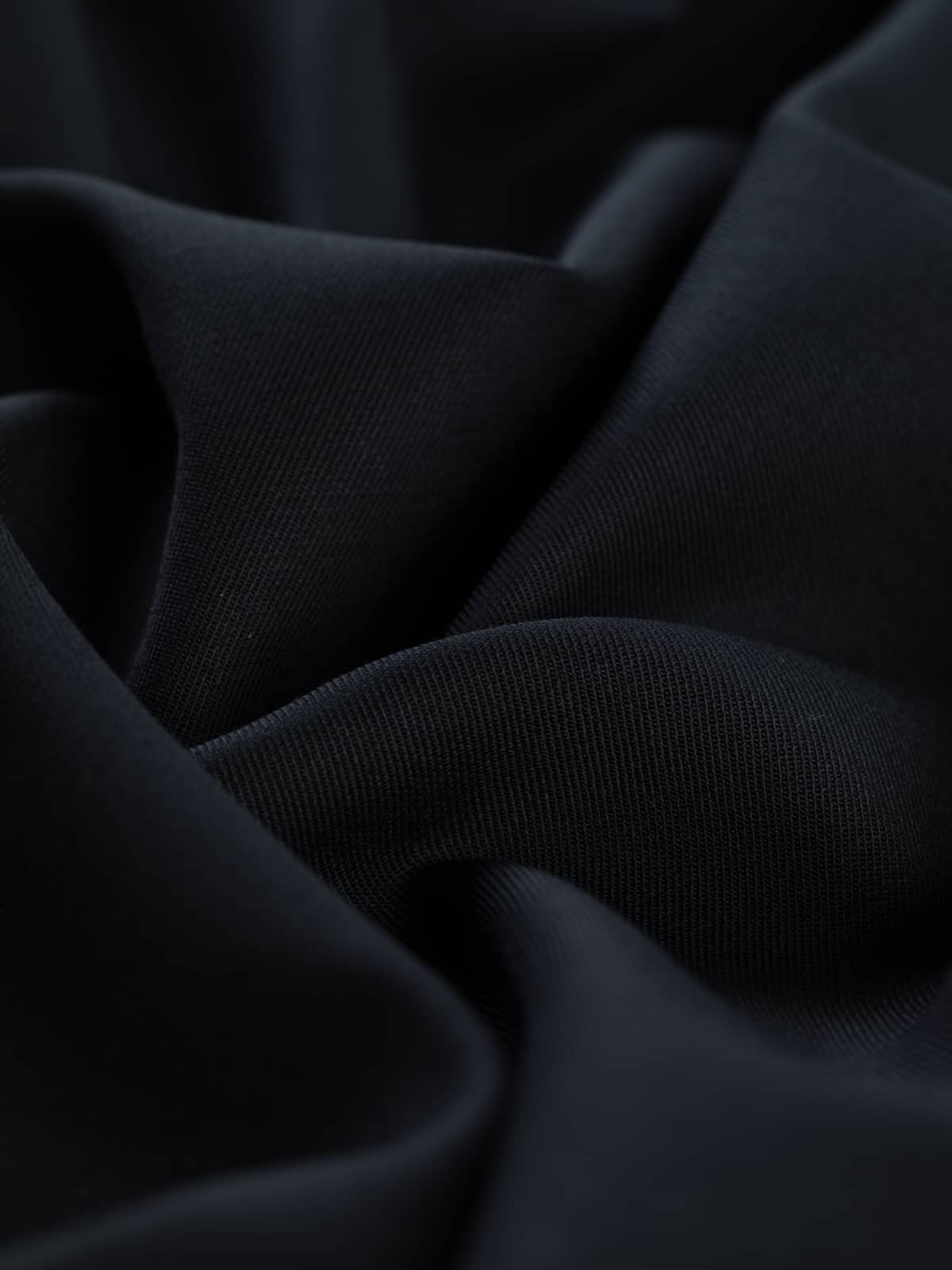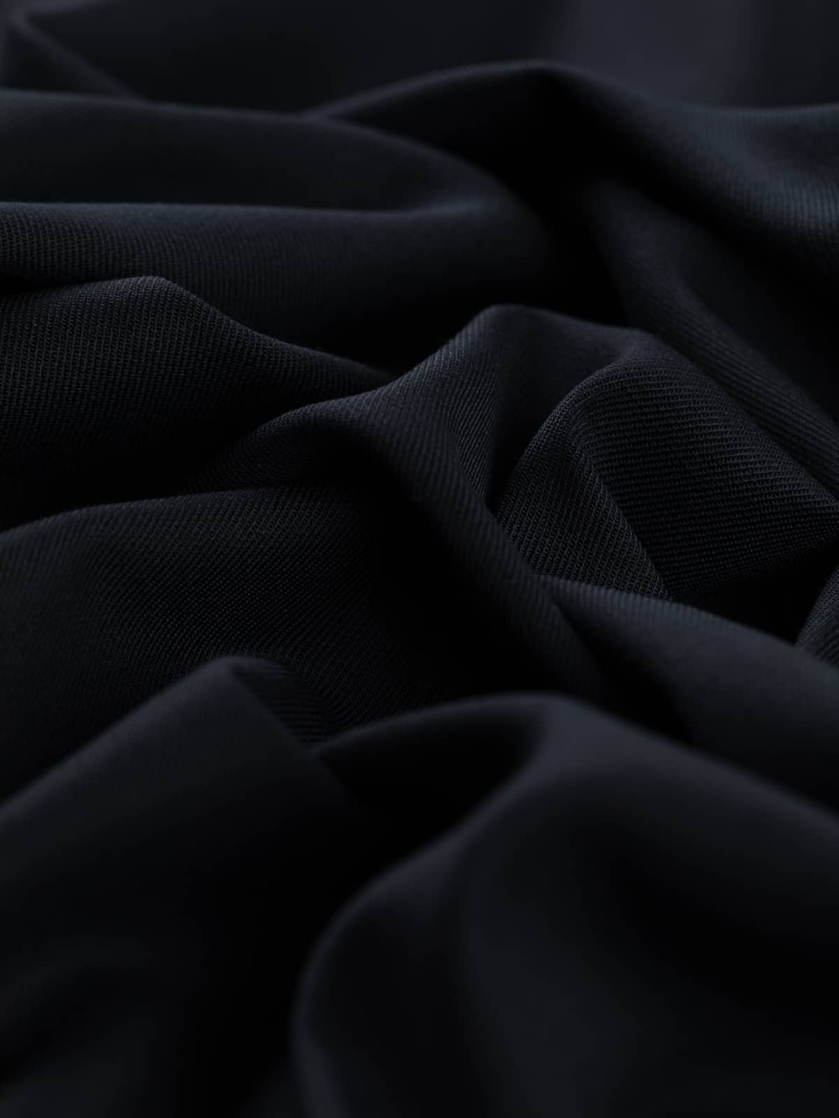 Shade: This top-notch Uniform Wool Stretch Twill features a solid darkest Navy blue hue,  which is almost black. This deep saturated Navy- Urban Midnight evokes images of sleek, modern, and metropolitan apparel.