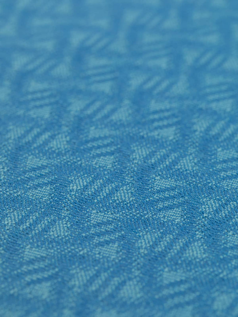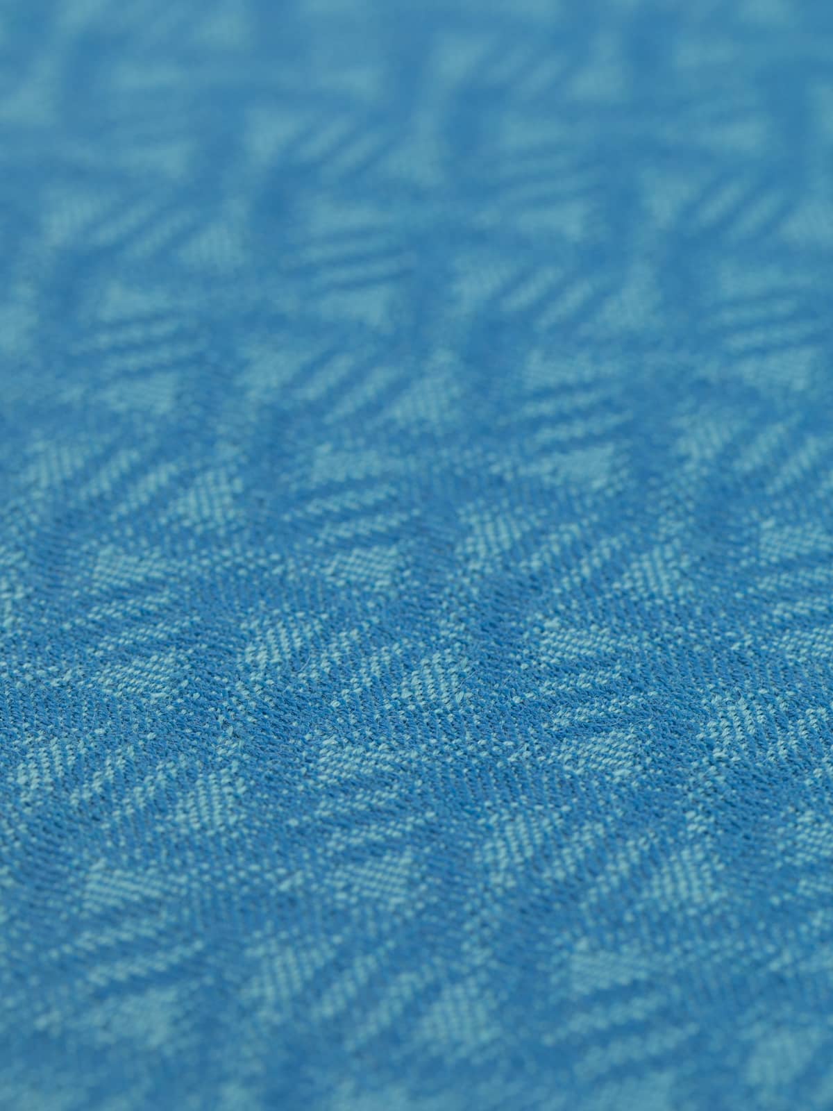 Design: Different coloured yarns on the warp and weft and the clever Jacquard weave produce a rhythmic, repeating all-over design redolent of ripples on the surface of a calm ocean. Jacquard fabrics have the option of using either or both sides, offering subtle changes in tonality.