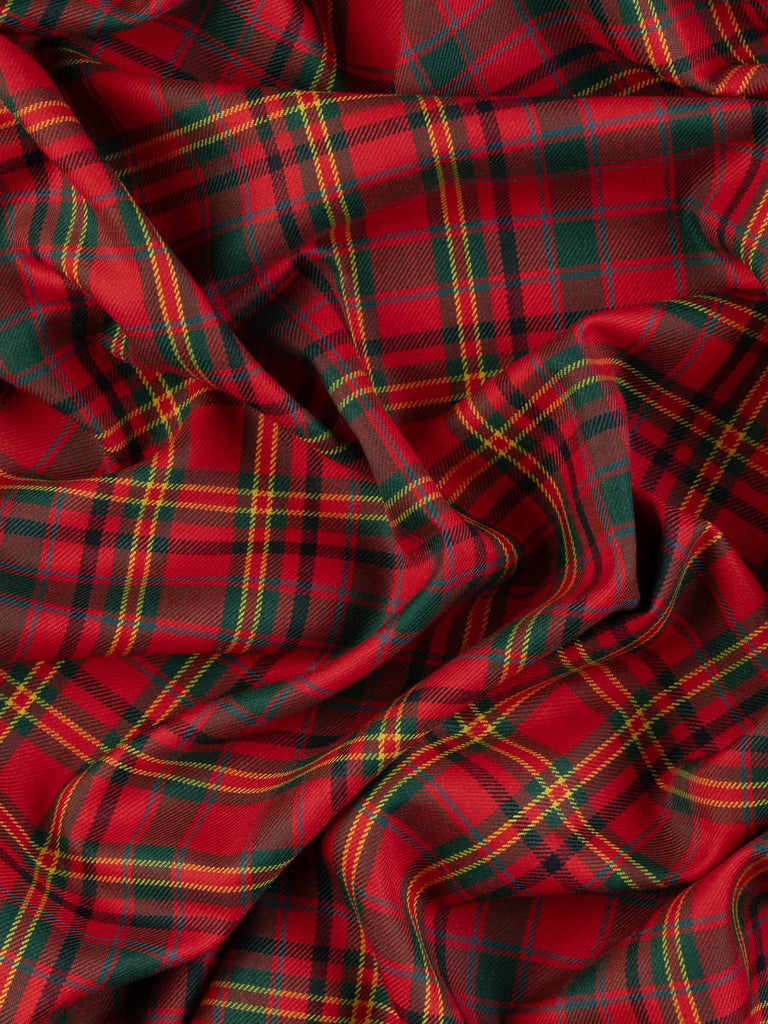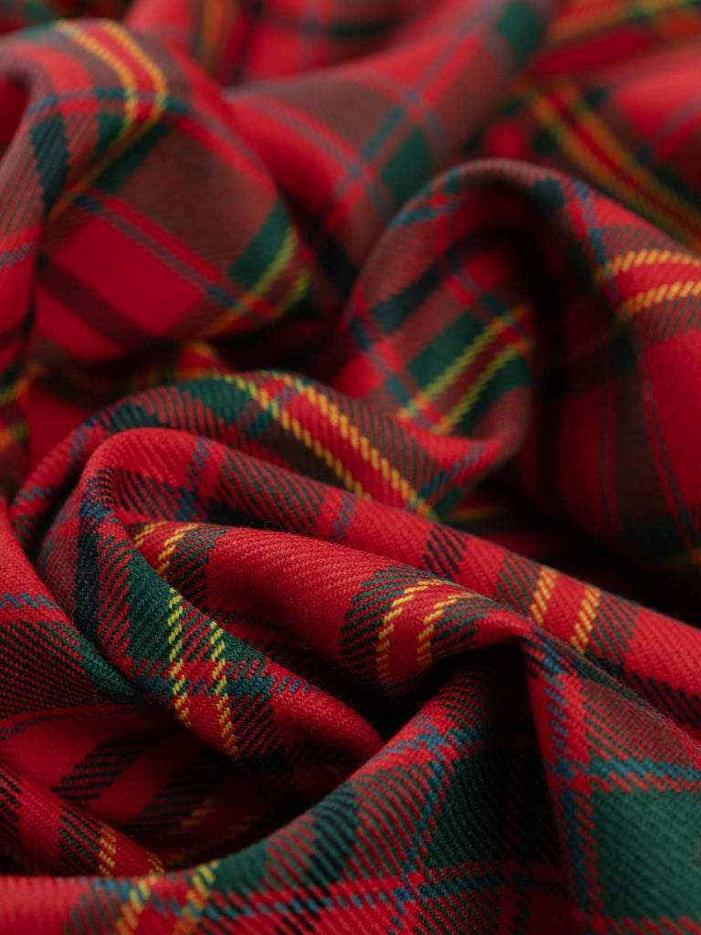 Drape: In addition to holding crisp details, this fabric drapes with a reassuring weight, ideal for bias cuts, flares, and flounced designs. The tartan sett can be cleverly used to create striking focal points in bespoke garments and creative pieces.