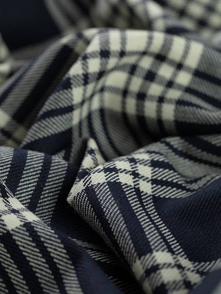 Shades:  This Yorkshire woven Navy Menzies is a striking version of the historically rich fabric that reflects the heritage of the clan it takes its name from. The original tartan is famously minimal (often just black and white), the stark combination making it visually unique and thought to symbolise the clan's boldness and clarity of purpose.