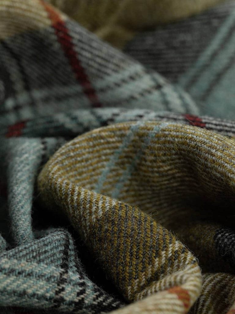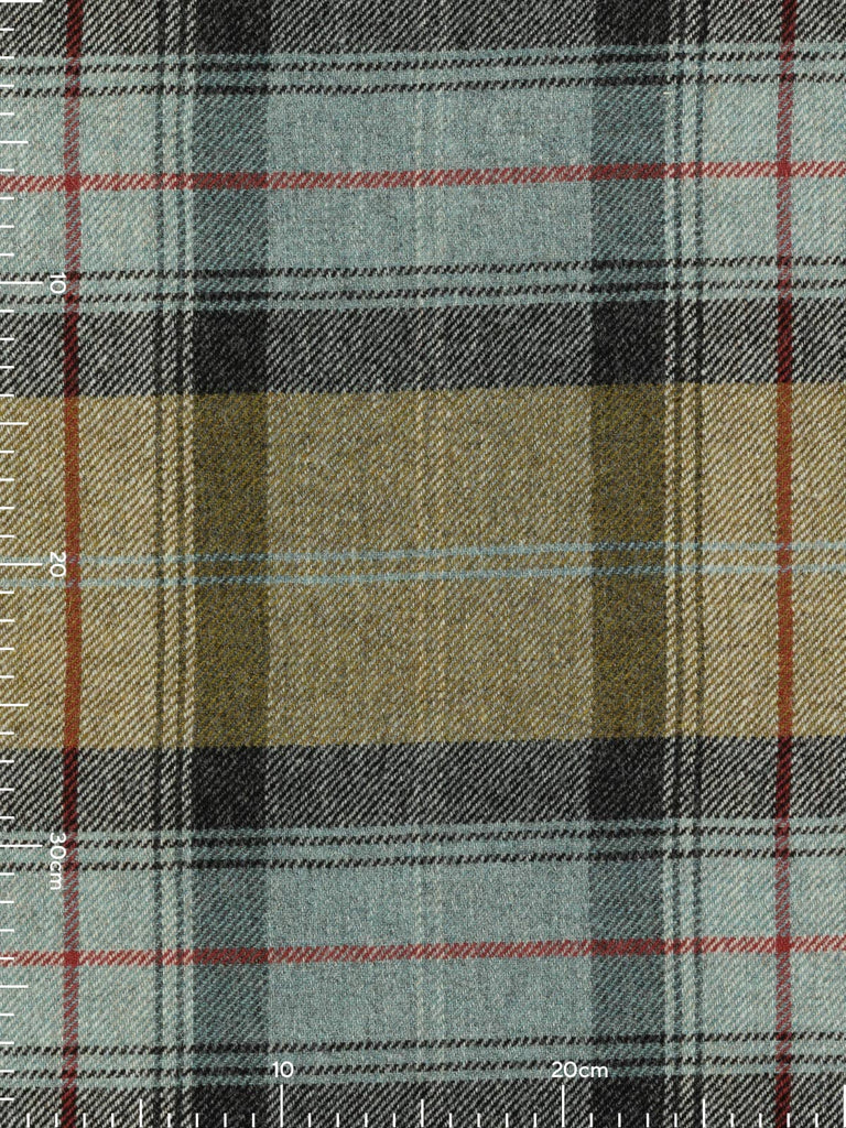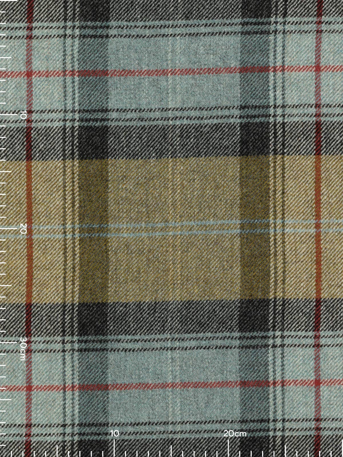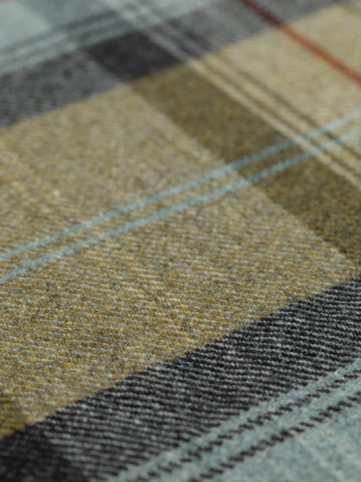 This quality woollen belongs to a collection made by our HoH weavers, a delightful new selection of Yorkshire Tweed Plaids in heavenly colours inspired by nature. The whole collection features a recurring deep blood red accent band throughout the check, a reminder of their Yorkshire Heritage.