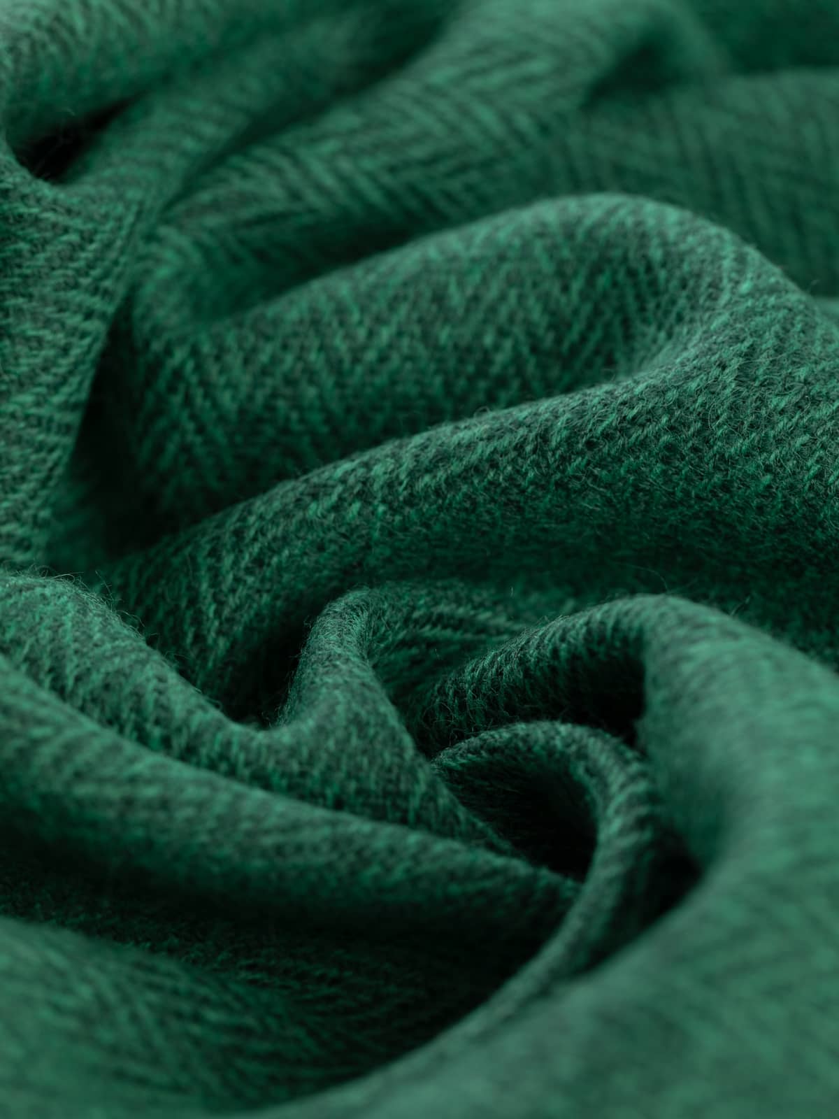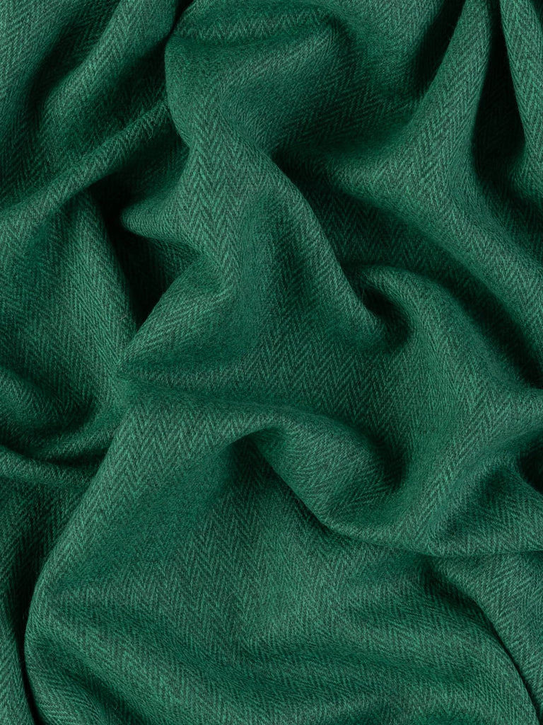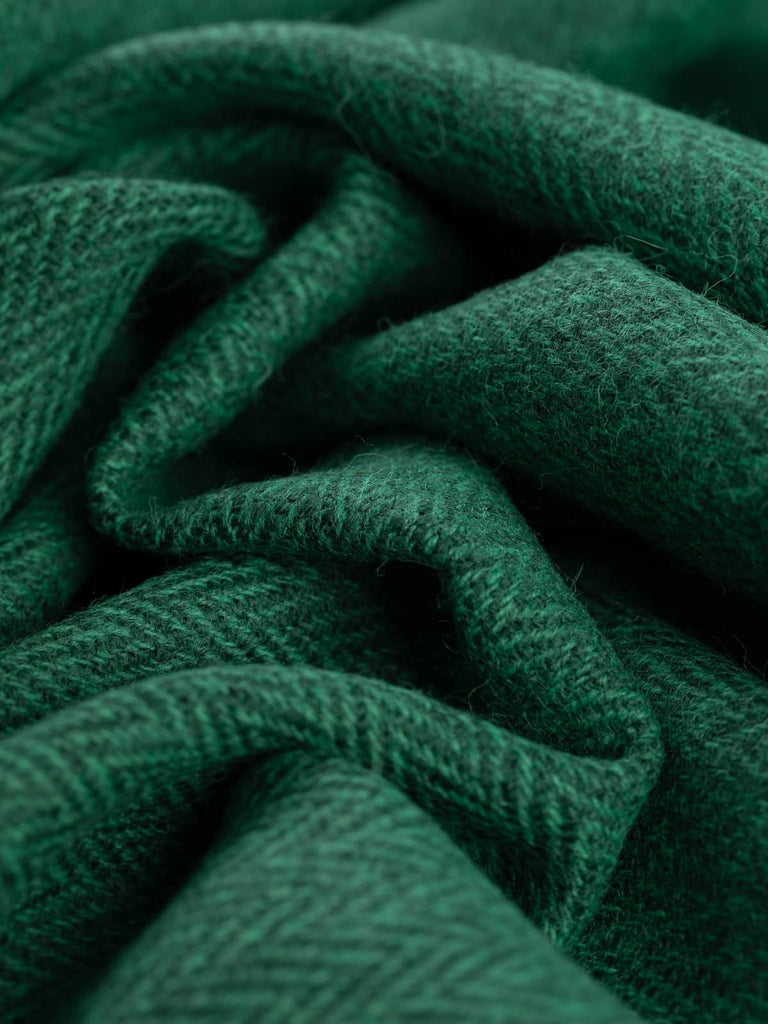Shades: Forest Tides is inspired by evergreen pine forests bordering calm waters of lakes and lochs, and is woven from a palette of dynamic, teal and deep pine green, melange-hued yarns. It captures the shifting play of light on water and shadowed evergreens. The characteristic chevrons of the herringbone weave are the hallmark of heritage craft, its edges softened by the melange effect for a look that’s both refined and organic.