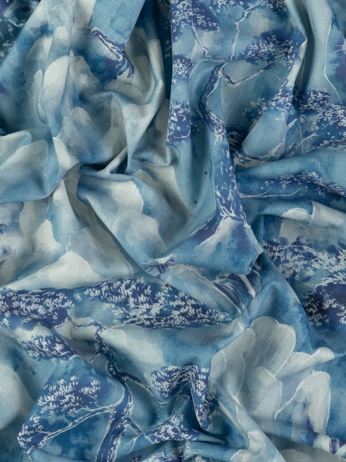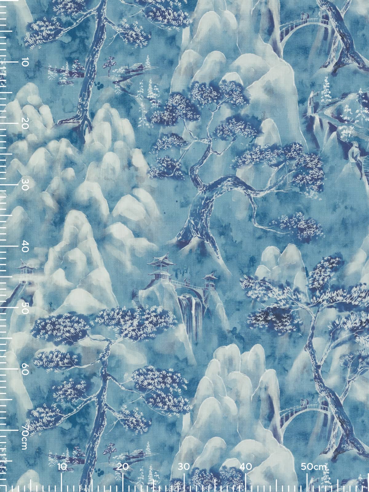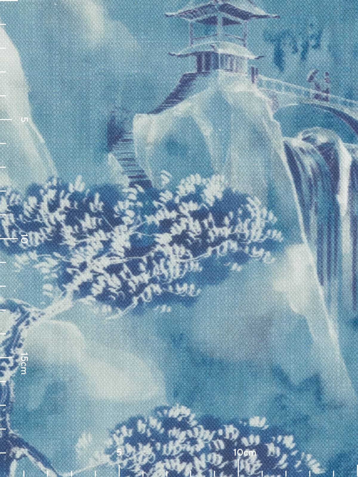 Shade: Indigo Mystic Mountain is printed with a traditional palette of graduated indigo hues from cool, faded blue through to mid and dark tones of denim blue characteristically favoured by ancient Chinese dye methods. This timeless colour was once prized- a symbol of luxury and wealth. The background and base of natural white add outlines and definition for the perfect composition.