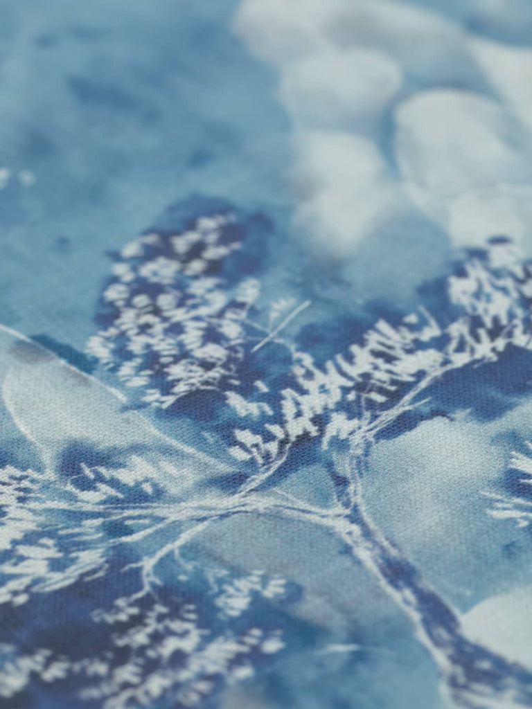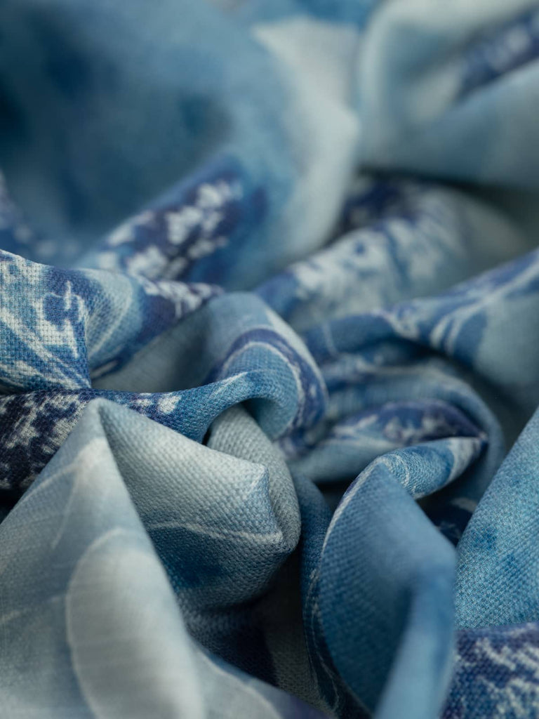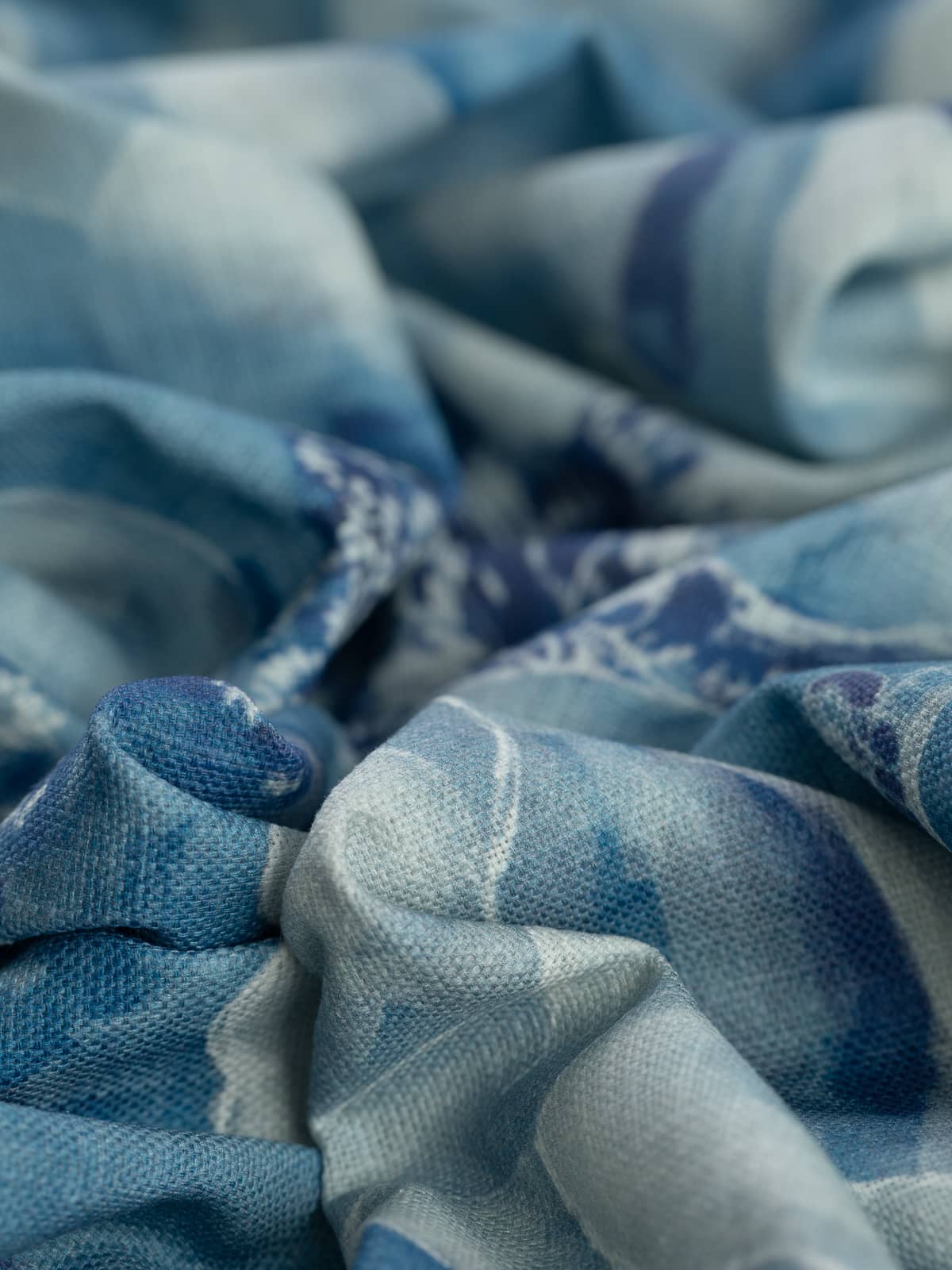 Shade: Indigo Mystic Mountain is printed with a traditional palette of graduated indigo hues from cool, faded blue through to mid and dark tones of denim blue characteristically favoured by ancient Chinese dye methods. This timeless colour was once prized- a symbol of luxury and wealth. The background and base of natural white add outlines and definition for the perfect composition.