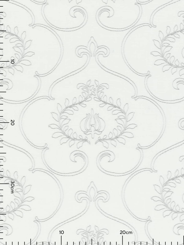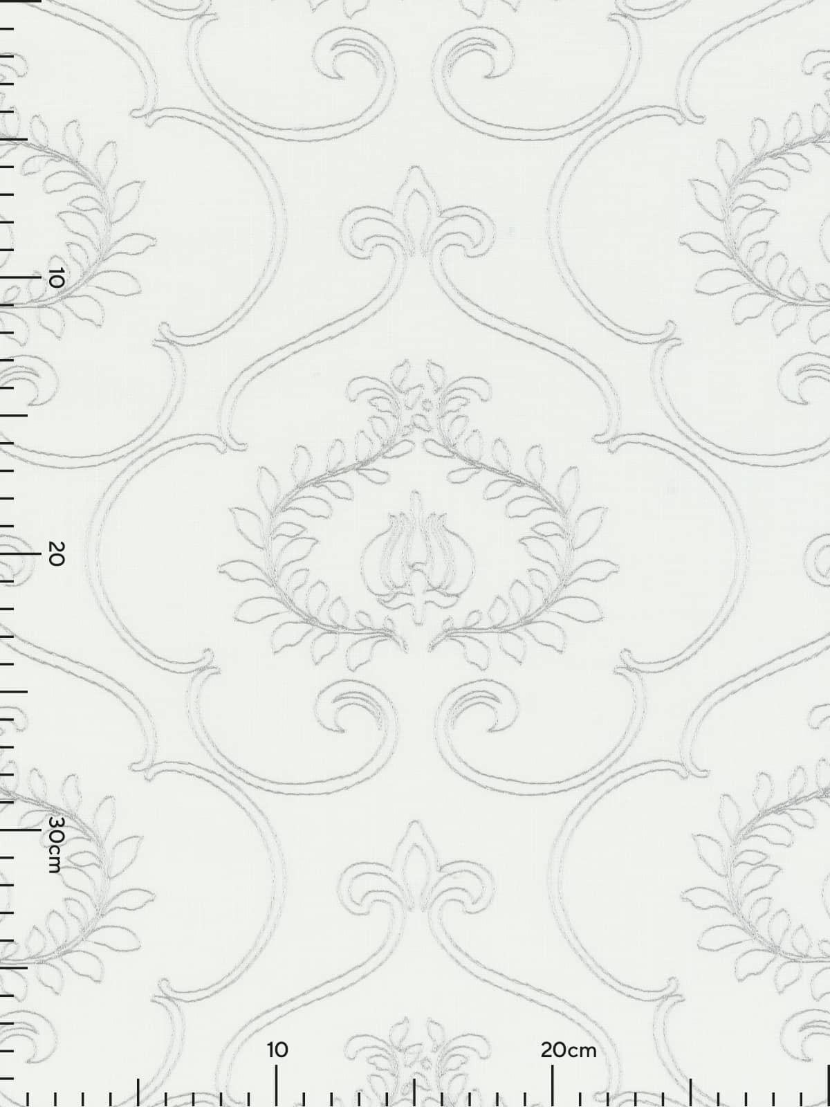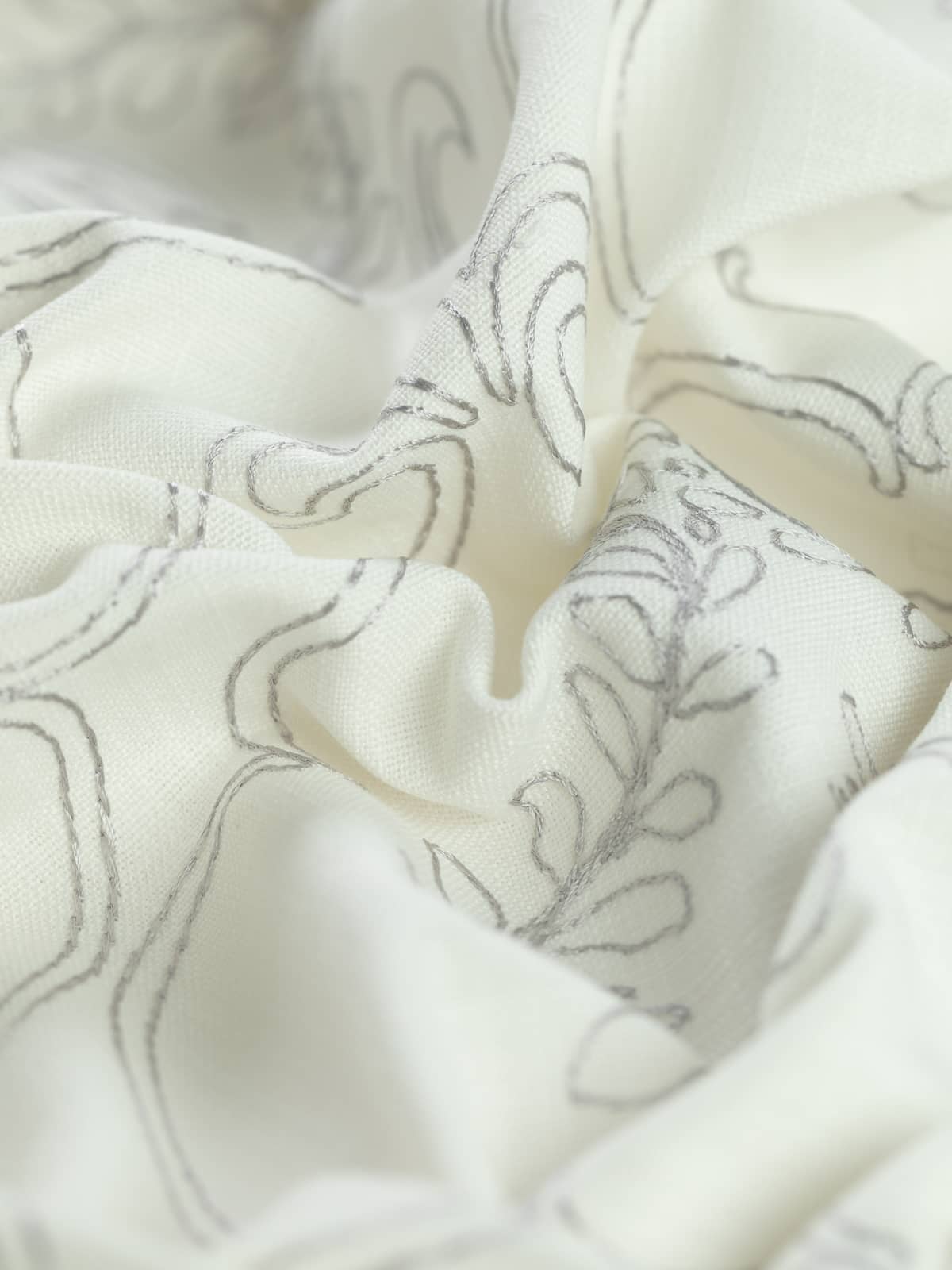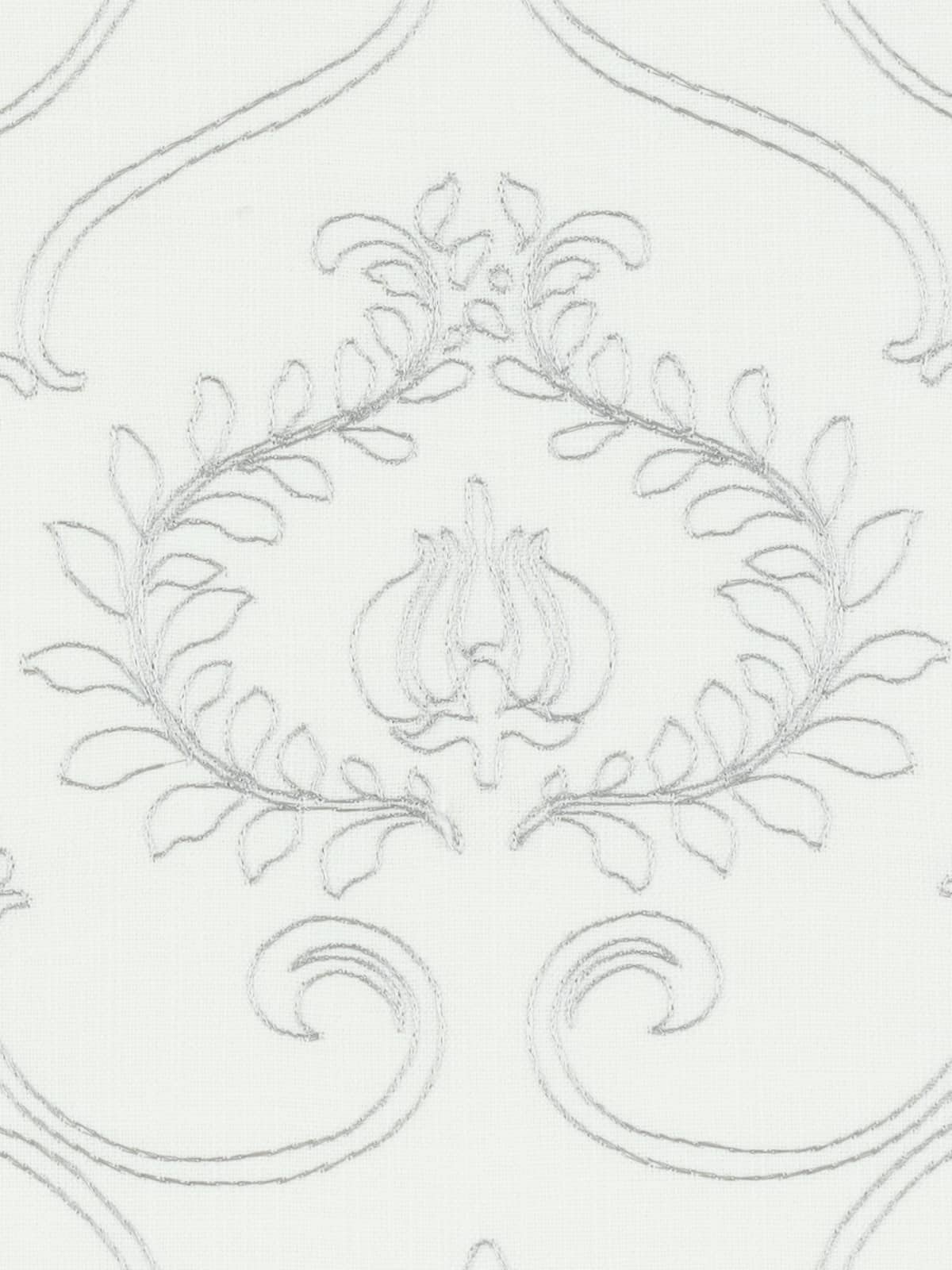 Shade: Laurel Wreath features a wonderfully fresh, light and airy natural white base and is embroidered with a subtle sparkling, silver grey, all-over design.