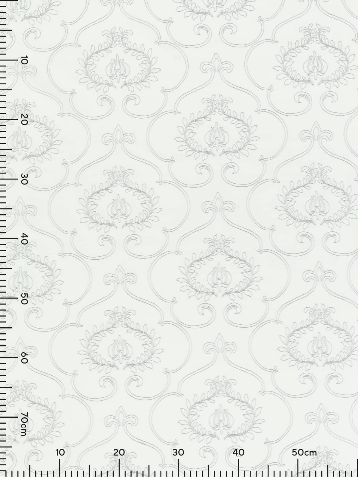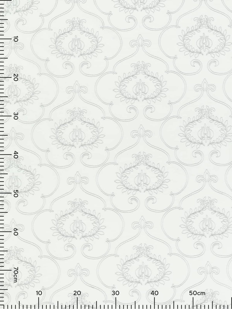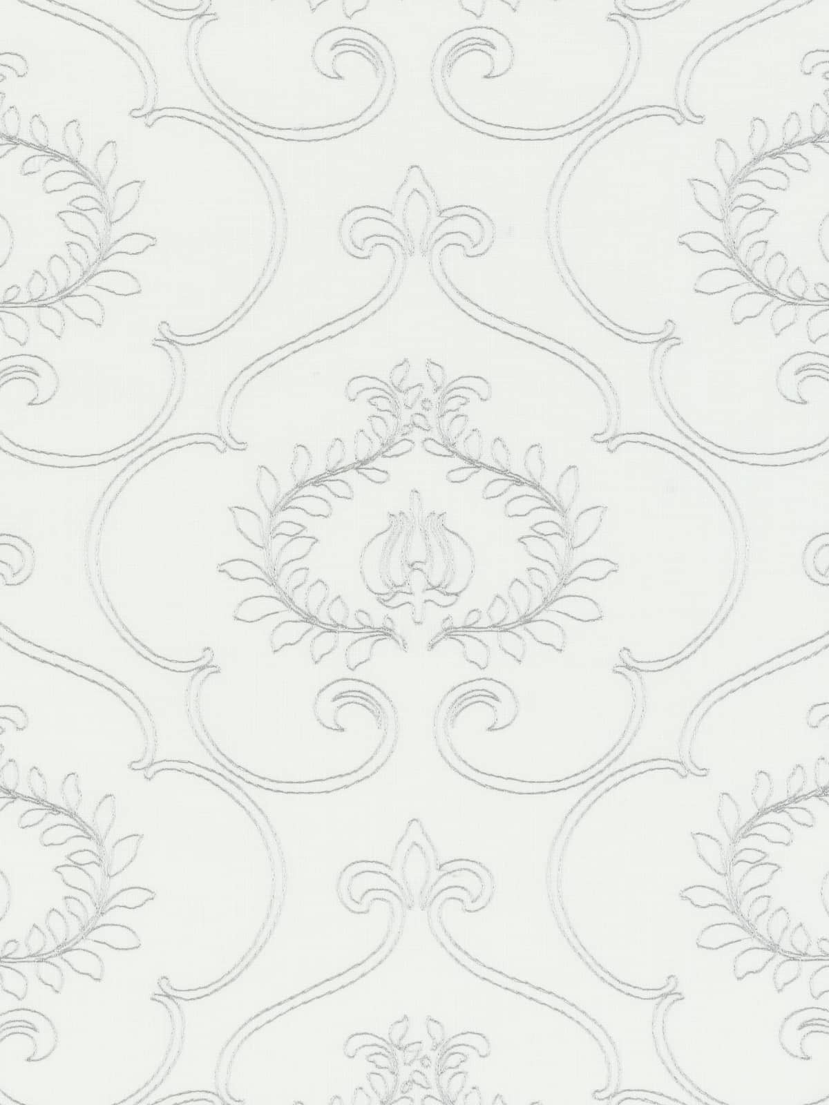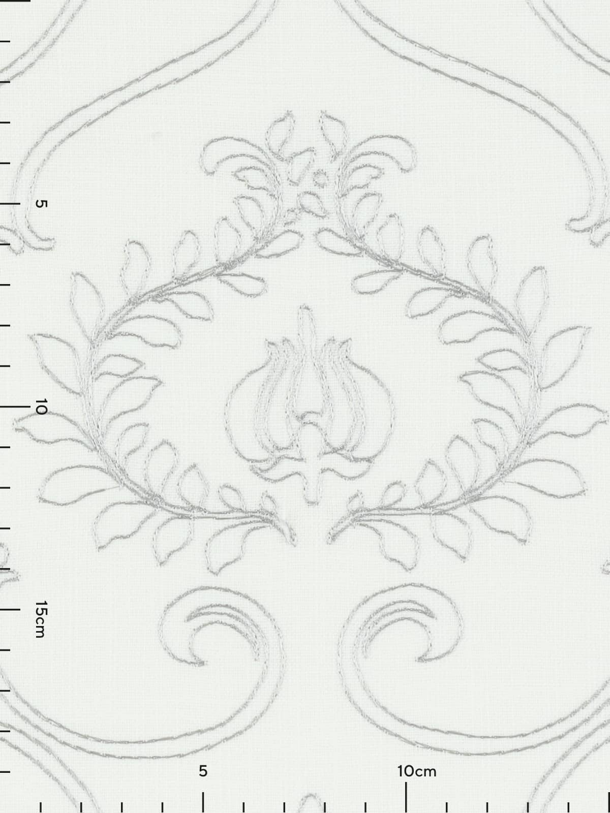 Shade: Laurel Wreath features a wonderfully fresh, light and airy natural white base and is embroidered with a subtle sparkling, silver grey, all-over design.