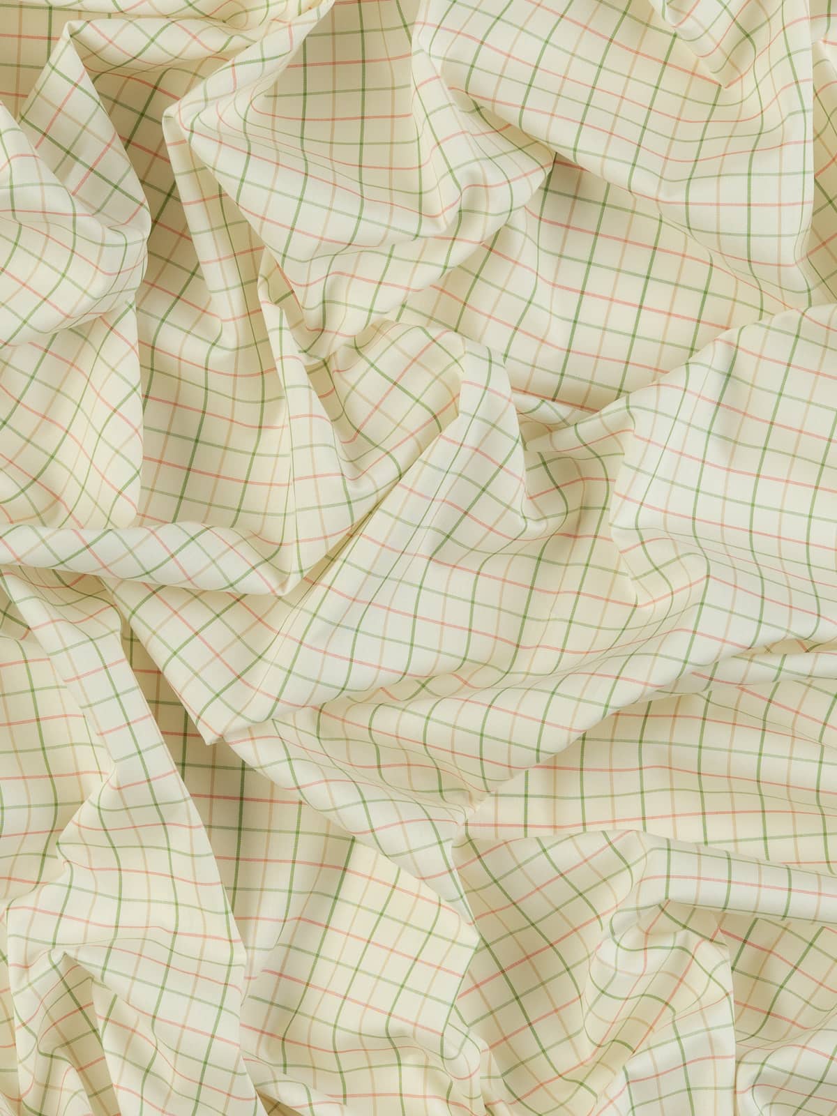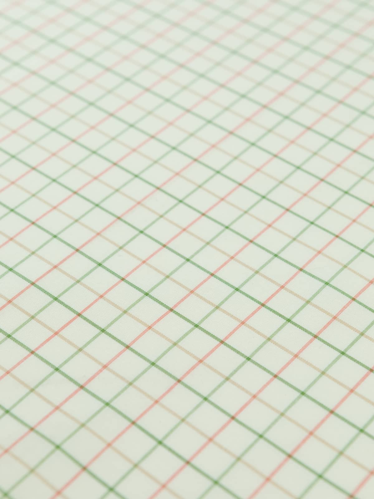 Design: Tattersall refers to a type of check pattern created by combining evenly spaced horizontal stripes with evenly spaced vertical stripes. Each stripe has a width of around 2mm in traditional variations. The checks formed were originally rectangular, due to the horizontal stripes being more widely spaced than the vertical stripes. However, modern-day Tattersall checks are now often square. Usually, Tattersall fabric consists of either two or three coloured lines on a lighter colour background. Here, this classic country check is presented in a crisp cotton poplin.