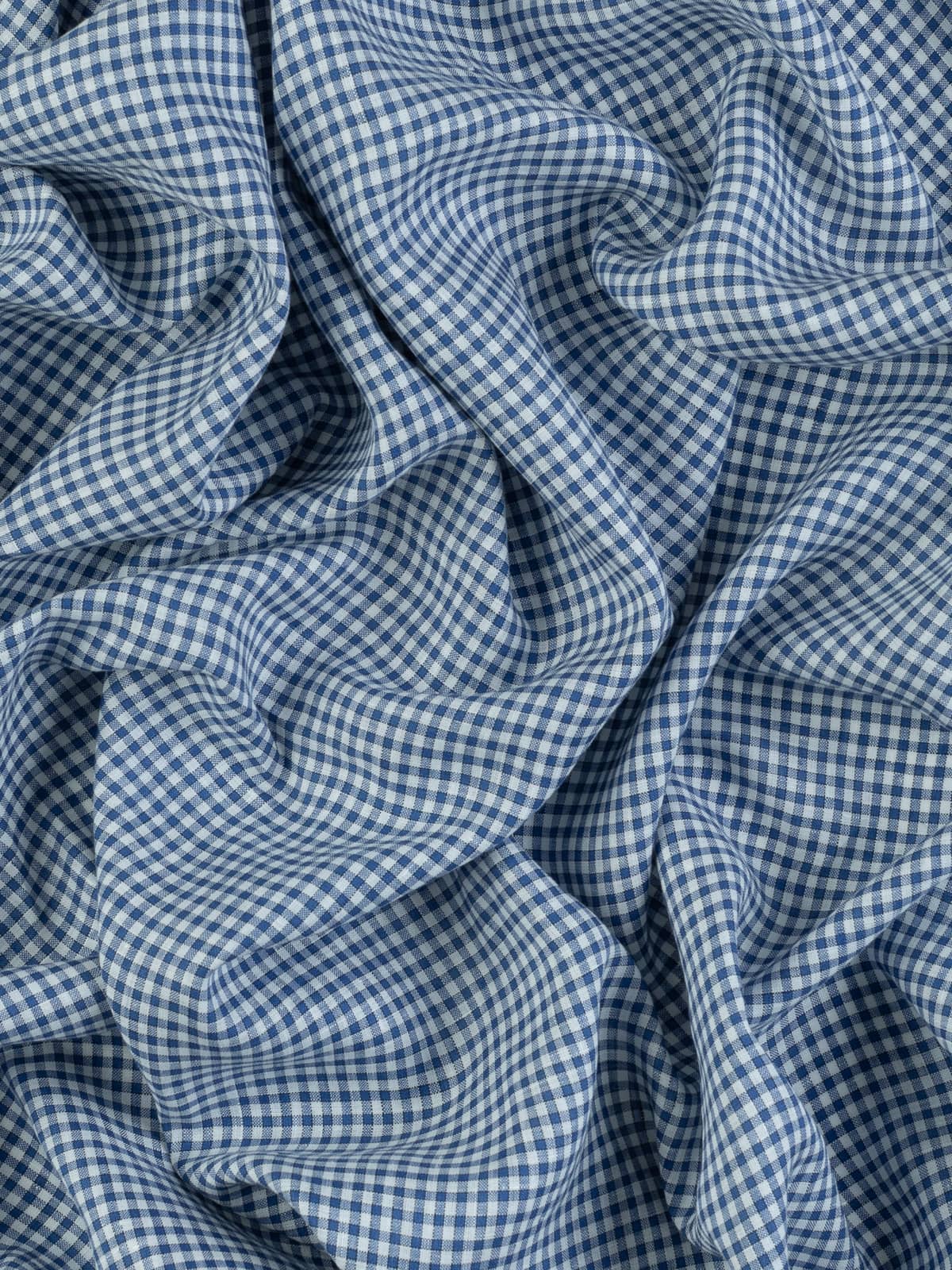 Design: Woven in a timeless gingham style and featuring a micro check of alternating fresh white and denim blue, outlined with fine black yarns for classic, cute country clothing or homewares.