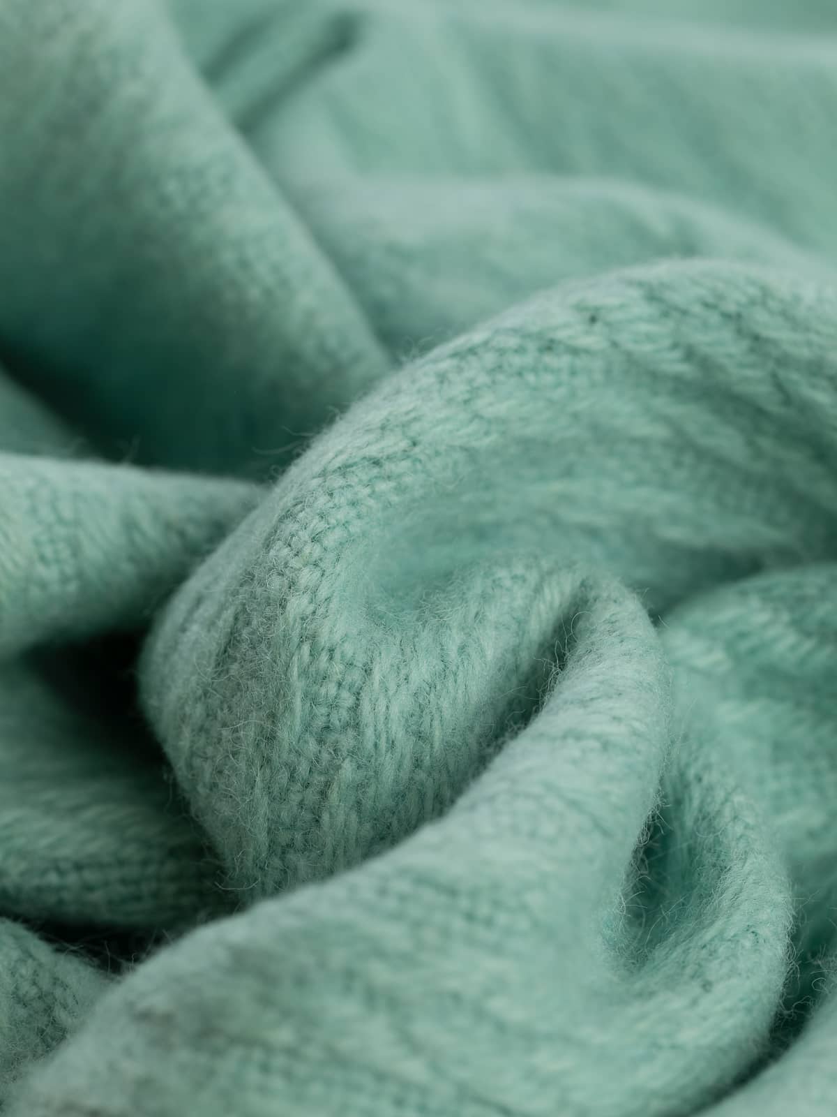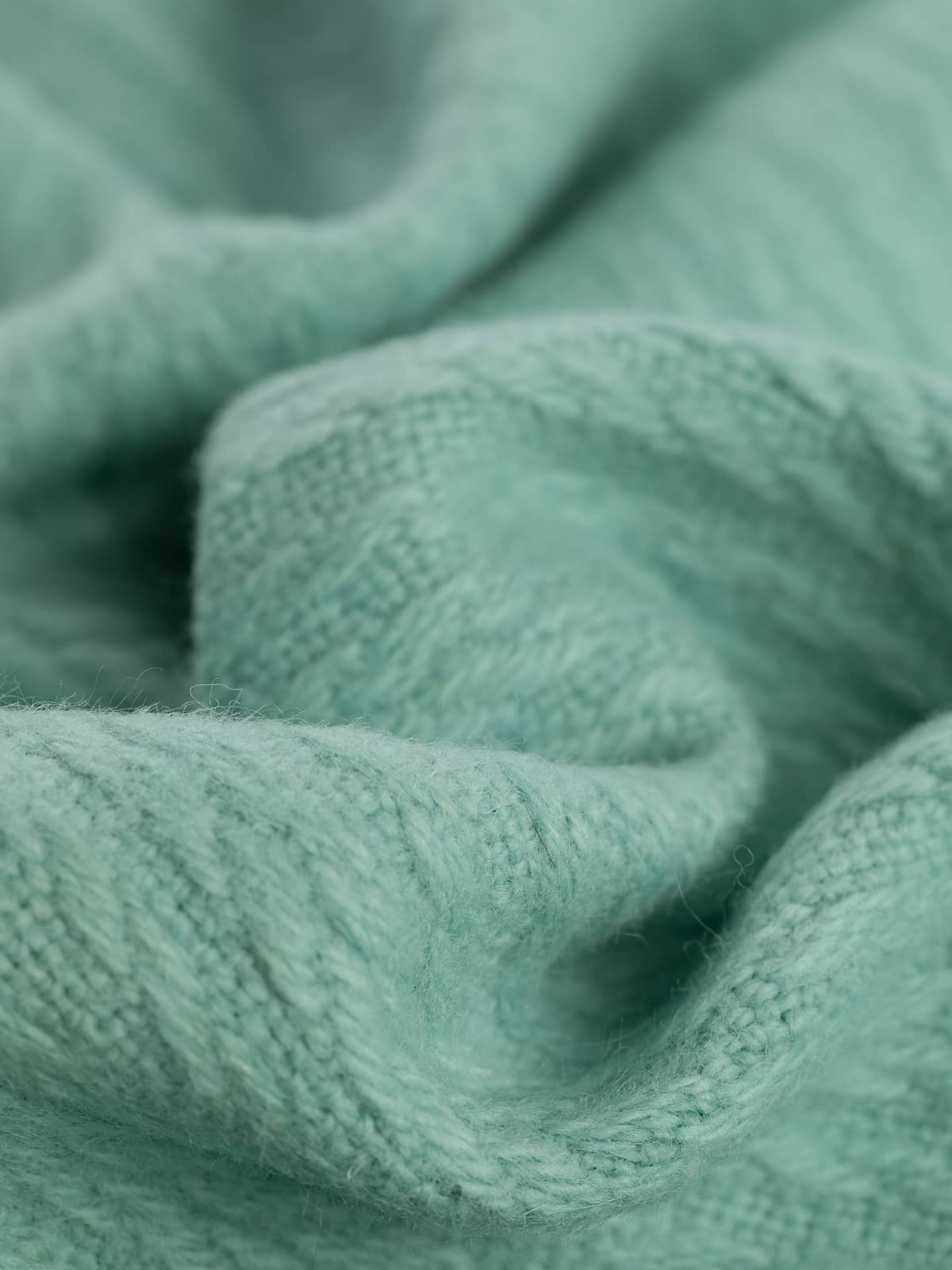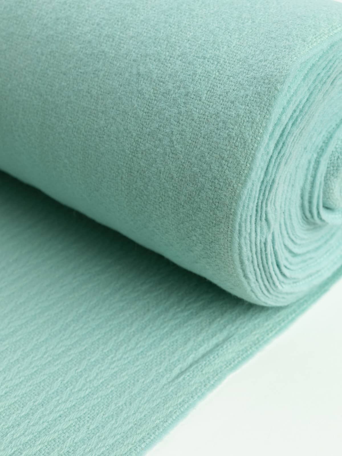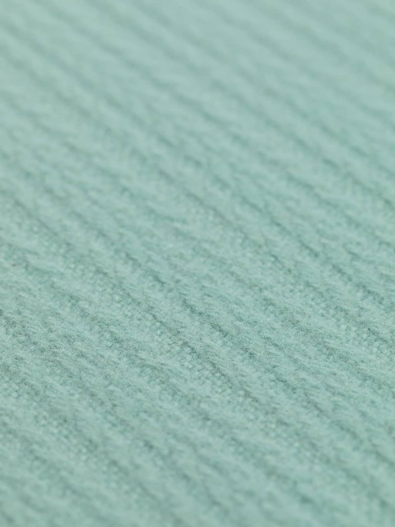 Shade: This impeccable 100% wool cable weave boasts a restful pastel blue-green hue, the colour of blue duck eggs. These calming blue-green tones have a calming simplicity that is priceless. Easily coordinated with soft pastels or used alongside chic neutrals.