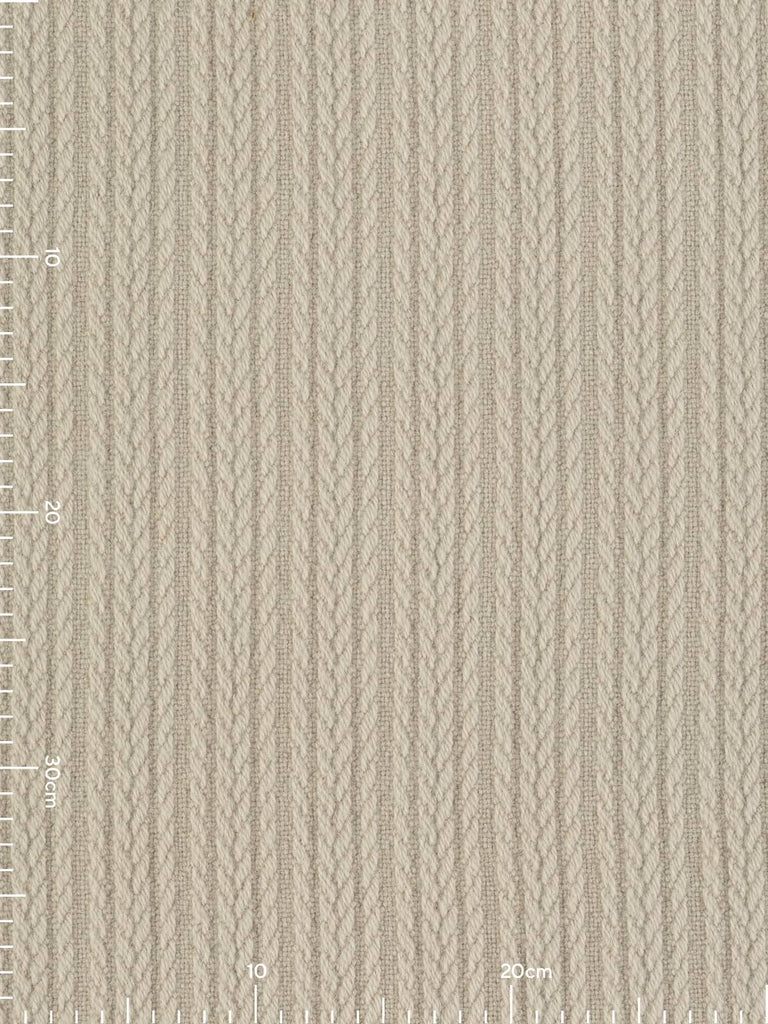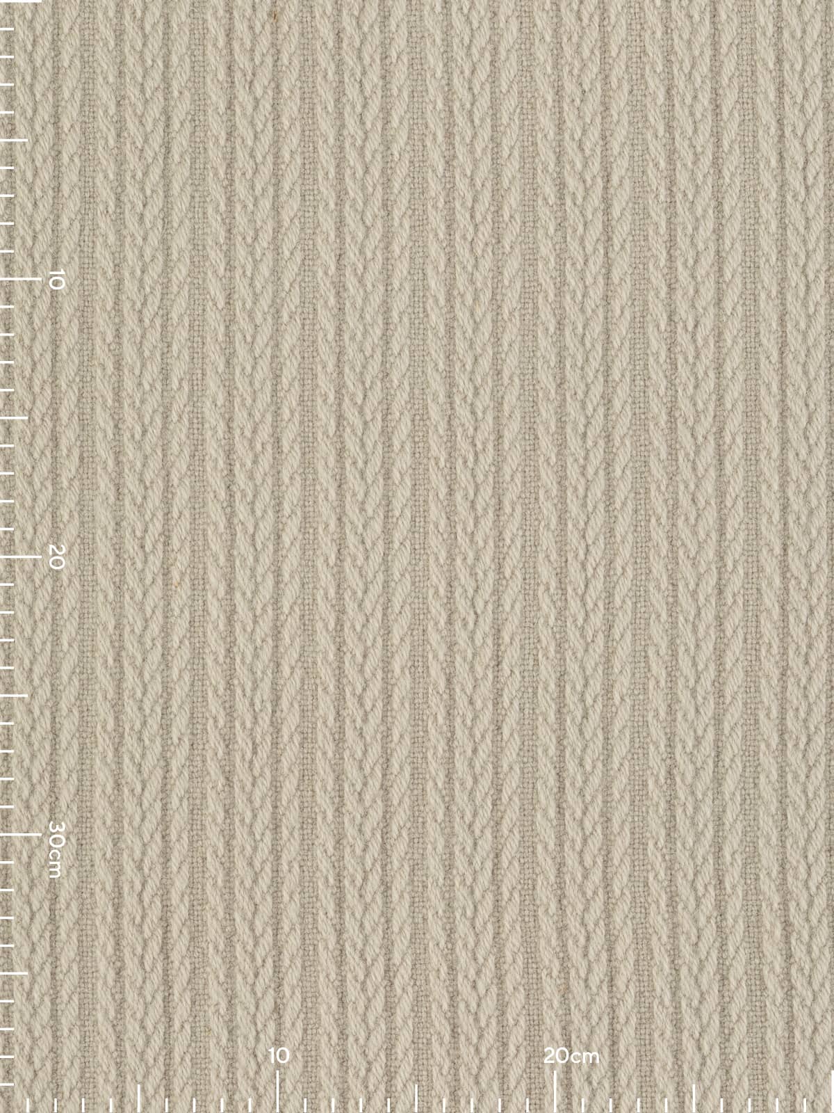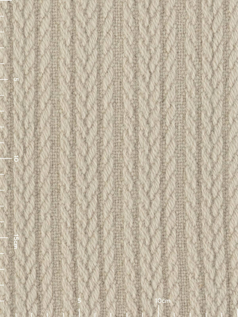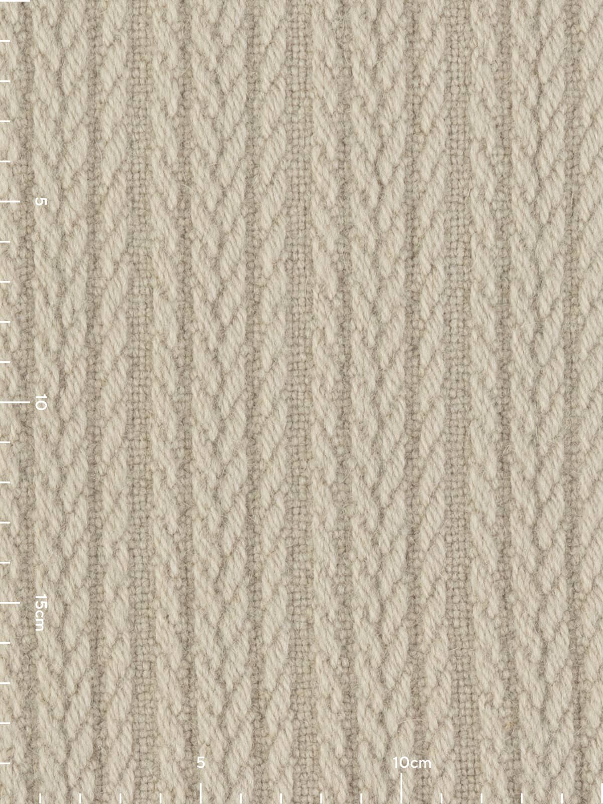 Shade: This impeccable 100% wool cable weave, Silver Sand, boasts a pleasantly simple, light beige hue, the colour of fine sand with silver undertones. Neutral tones have a stylish simplicity that is timeless. They can be easily coordinated with other cool neutrals or used alongside richer or brighter hues as grounding elements.