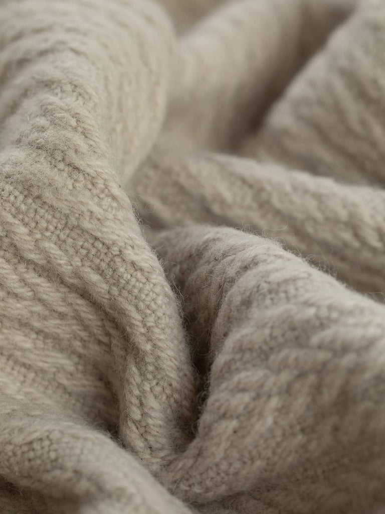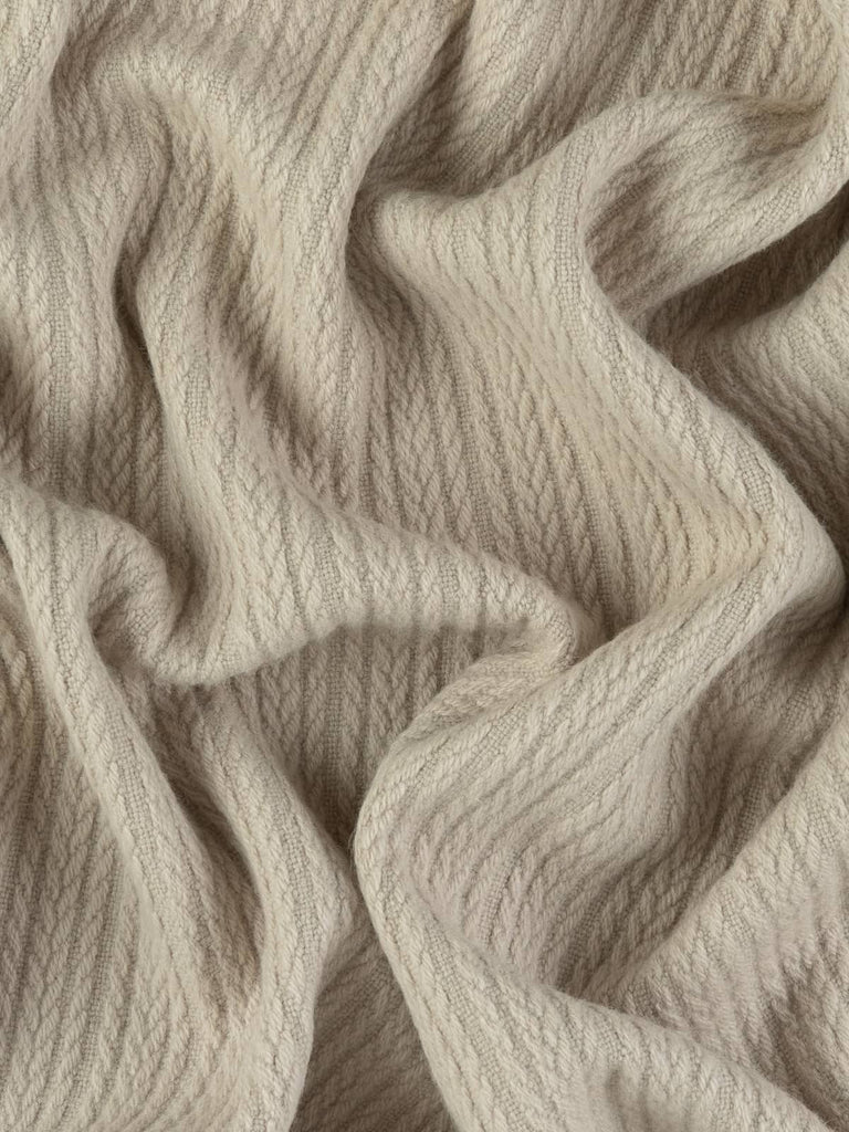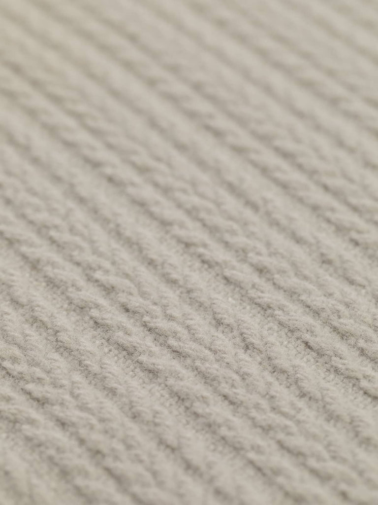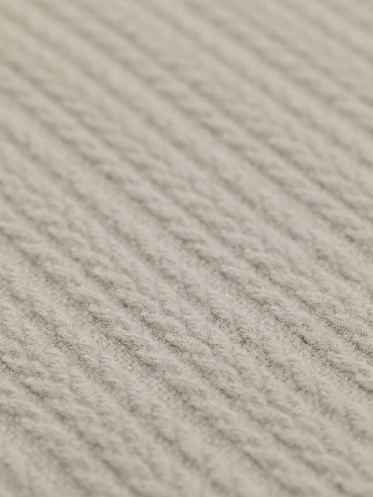 Shade: This impeccable 100% wool cable weave, Silver Sand, boasts a pleasantly simple, light beige hue, the colour of fine sand with silver undertones. Neutral tones have a stylish simplicity that is timeless. They can be easily coordinated with other cool neutrals or used alongside richer or brighter hues as grounding elements.
