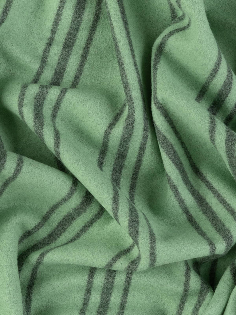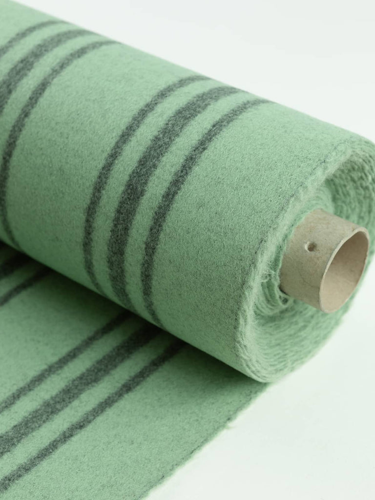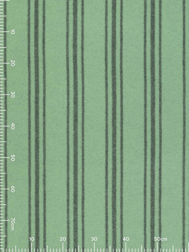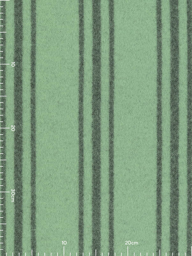 Shade: This quality all-wool Melton fabric sports a gentle, cool mint green hue with mottled grey undertones produced by its marled yarn. Mint Serpentine features vertical triple-banded, repeating stripes in contrasting storm grey. Team this calming combination with other muted tones of green water, or with grounding storm grey for a palette inspired by nature. Alternatively, contrast with complementary pops of Shrimp Pink and Palma Violet for a sweet-as-candy theme.