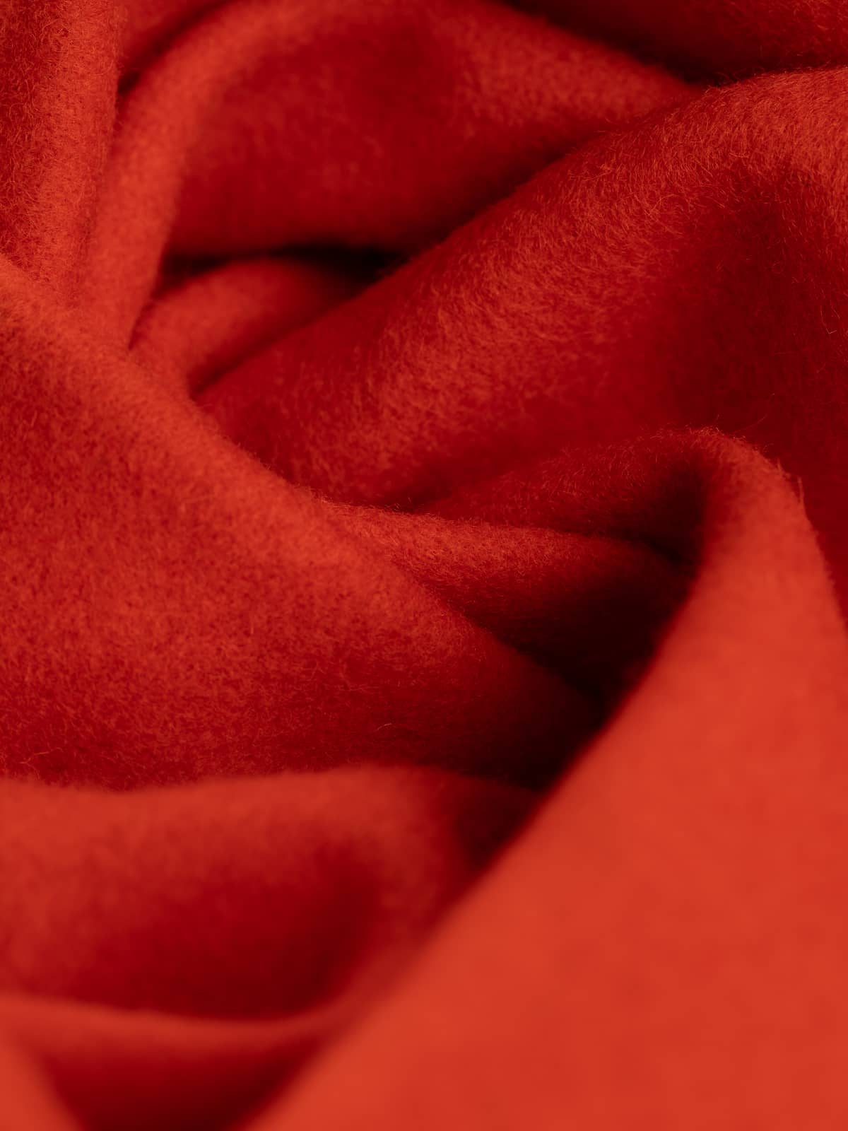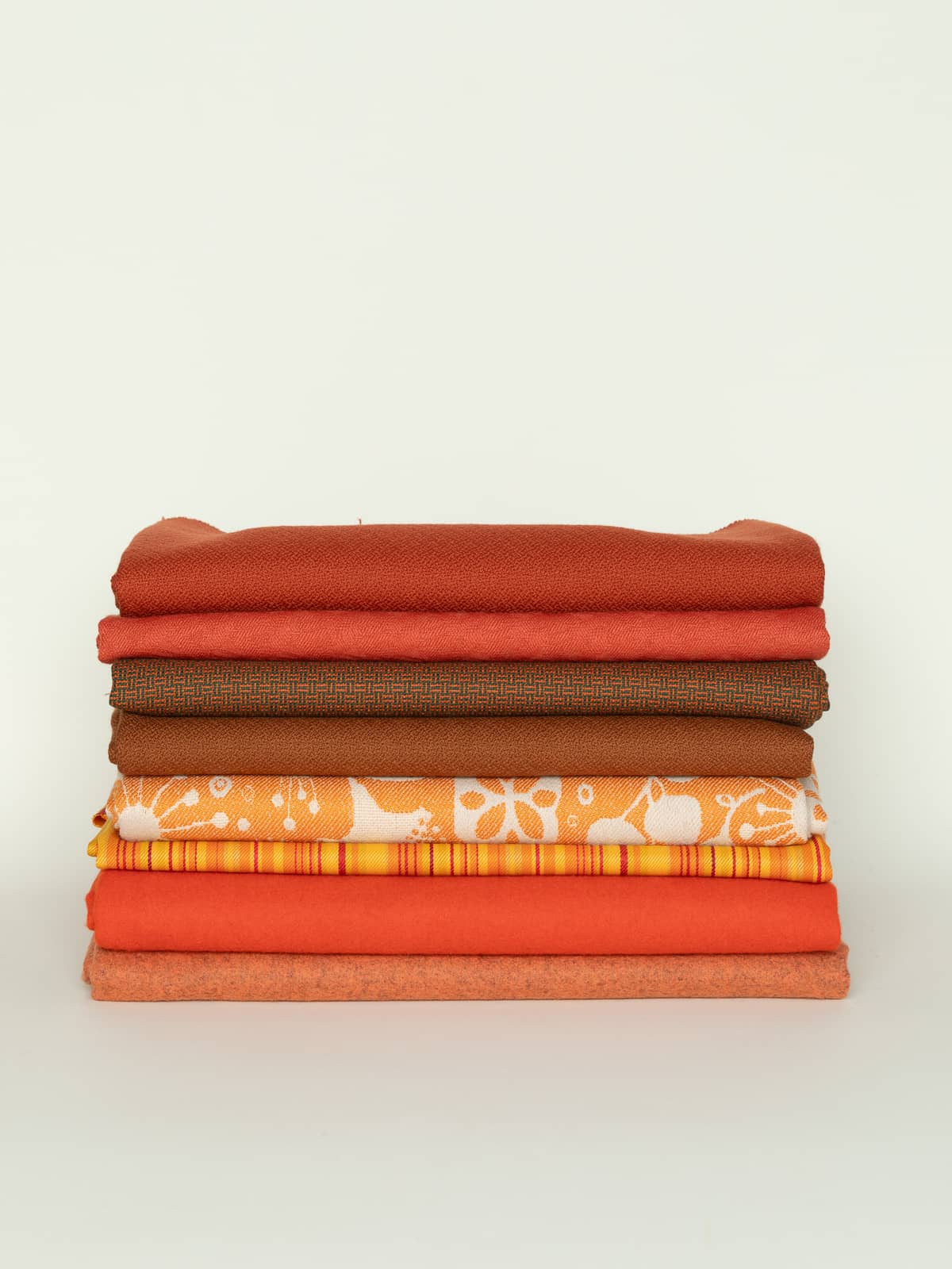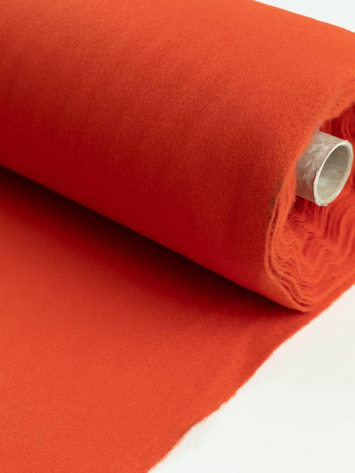 Shade: Intense Orange is, of course, a first-rate all-wool fabric that boasts the most magnificent deep orange hue; it is so intense, you can almost smell its citrus oils. This intense orange hue has a depth of colour akin to the sun-ripened skin of an autumnal pumpkin or a fiery chilli pepper. With all these sun-soaked and fiery references, it's no wonder orange is a statement hue. Perfect for creating statement garments/ pieces, or used alongside other autumnal hues, muted browns, russets, and golds for a warming palette. Alternatively, ground with silver grey or be daring and colour block with purple for clashing confidence.