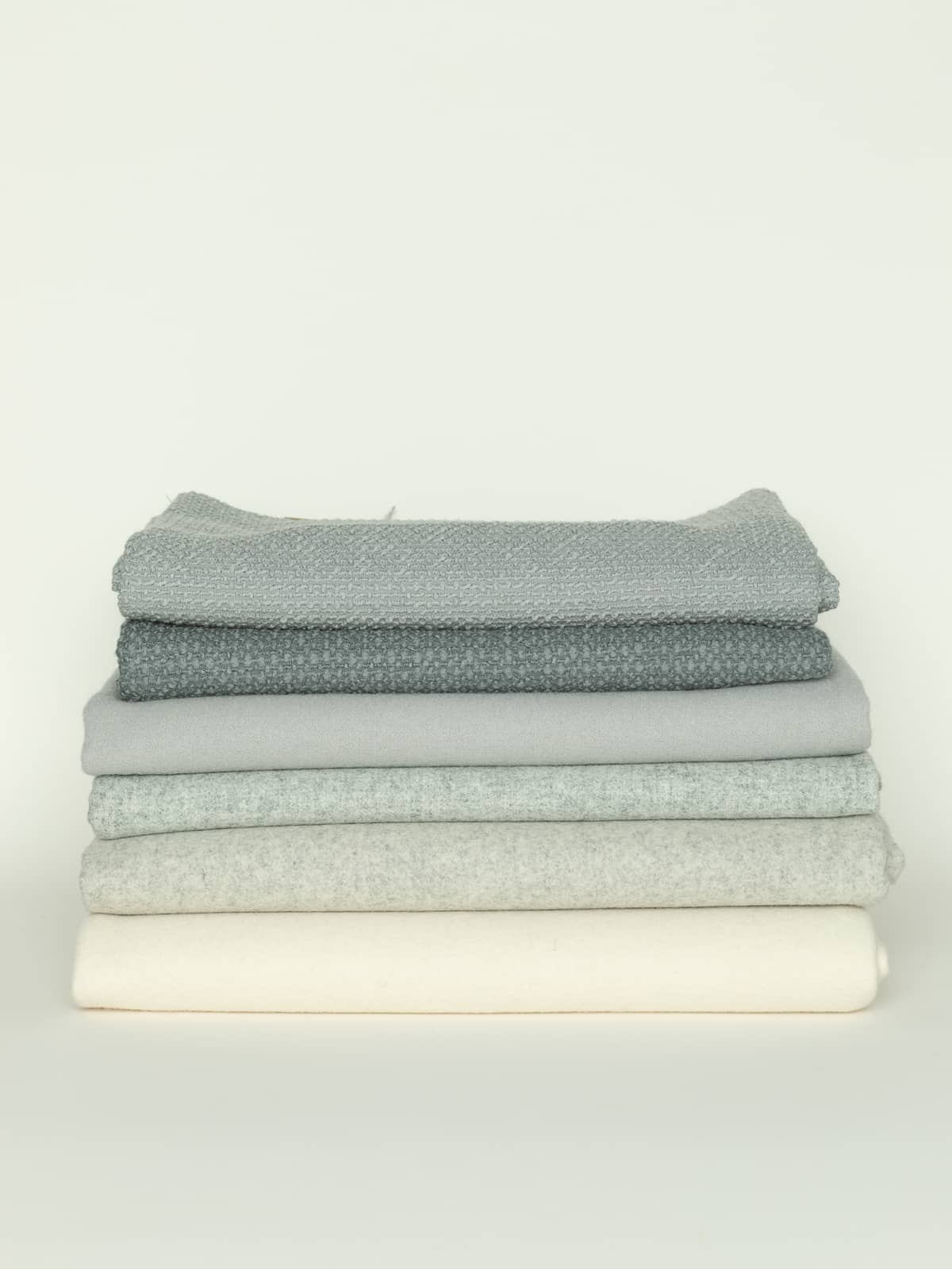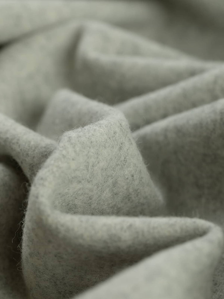 Shade: This quality all-wool Melton fabric sports a versatile light grey tone with darker undertones produced by its subtle marl yarn. Mizzle Marl is a universally popular soft grey hue with warm cream undertones. Team this mizzled marl grey with similar cool greys for pure sophistication, look to Thunderbolt Marl and Brume Marl. Alternatively, use as a grounding tone for brighter hues.