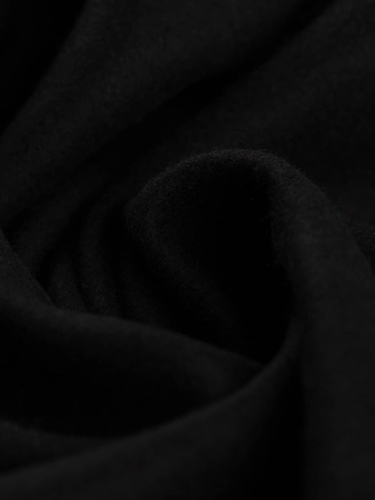 Shade: This first-rate wool Melton comes in one of the most classic Melton hues, navy, but this Navy Abyss is the darkest colour saturated tone, akin to the darkest depths imaginable. Dark navy blue is the ideal alternative to black, which some find a little harsh or perhaps too serious. This stylish classic is an ideal choice for timeless garments and will become an indispensable key piece within your wardrobe when fashioned into overcoats and jackets.