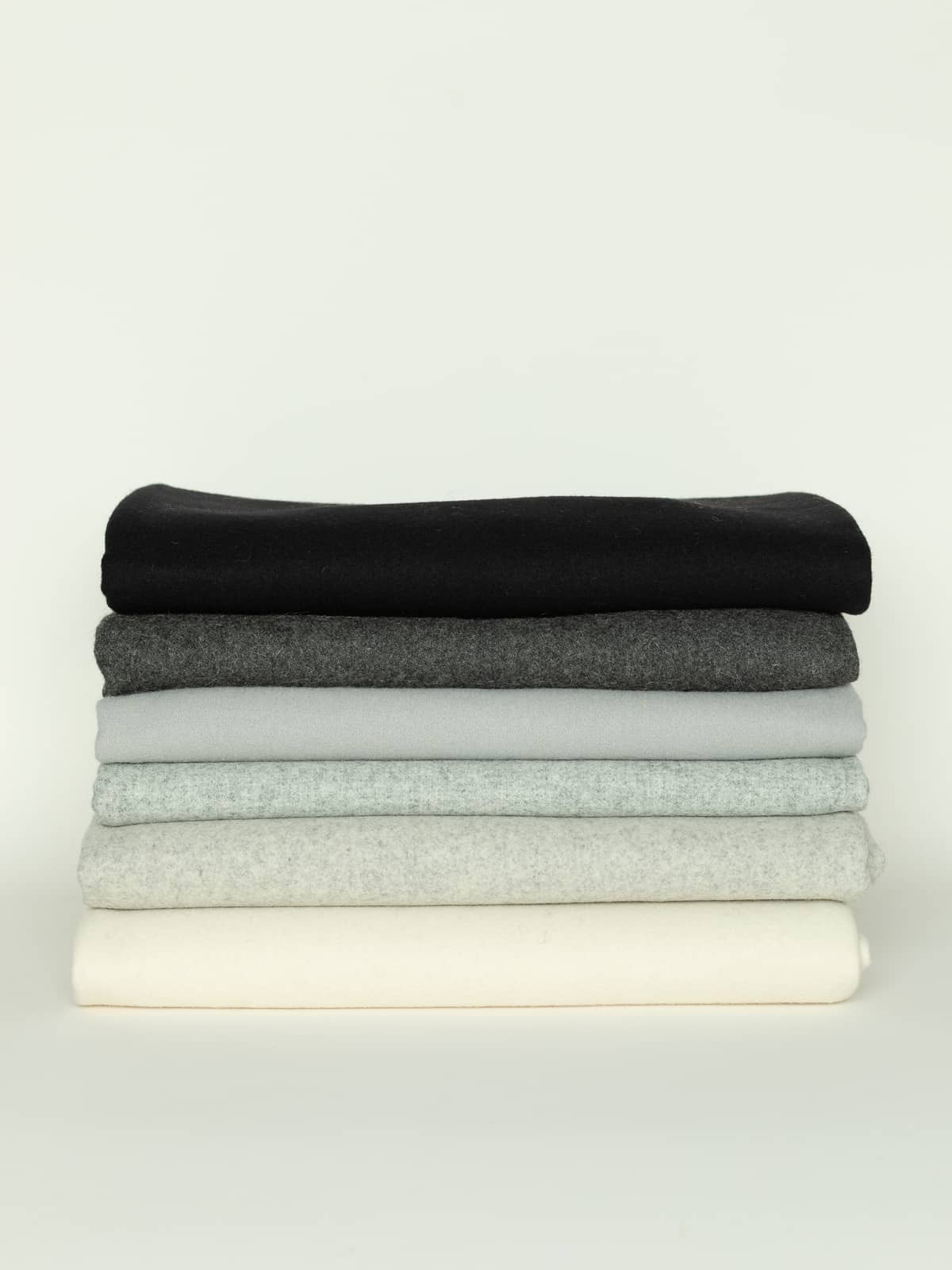 Texture: This heavyweight, closely woven wool fabric has a brushed, felted, blanket-like hand that protects against the elements.