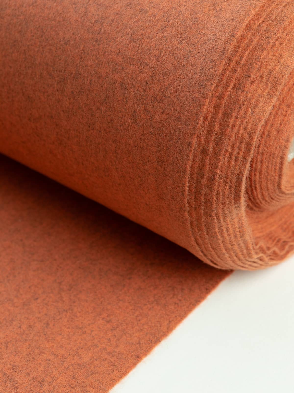 Shade: This quality all-wool Melton fabric sports a warm pink-terracotta hue with grey undertones produced by its marled yarn. Terra Rossa Marl has the warmth of sun baked earth. Team this beauty with similar warm red-based hues for a sunset palette, hues such as Lava Marl and Rhodonite Marl.