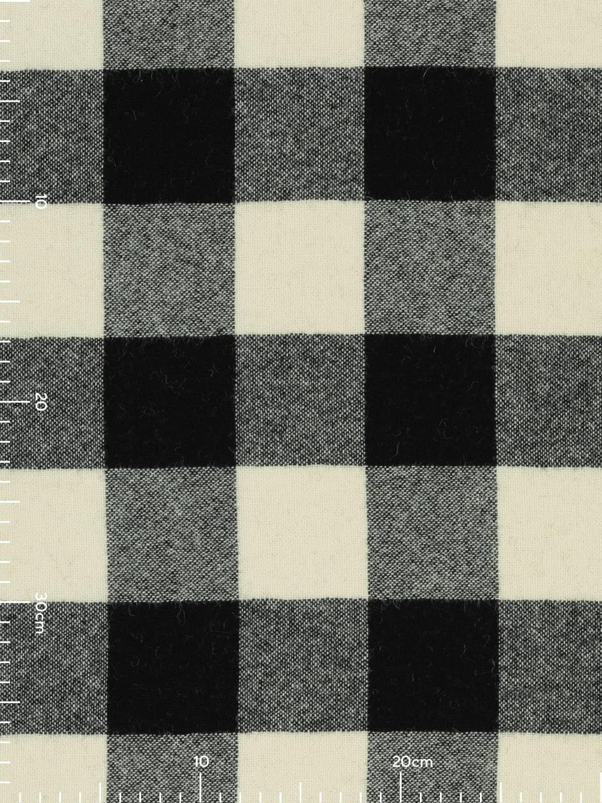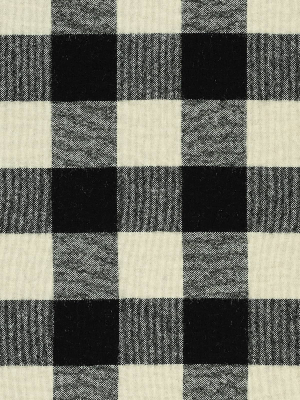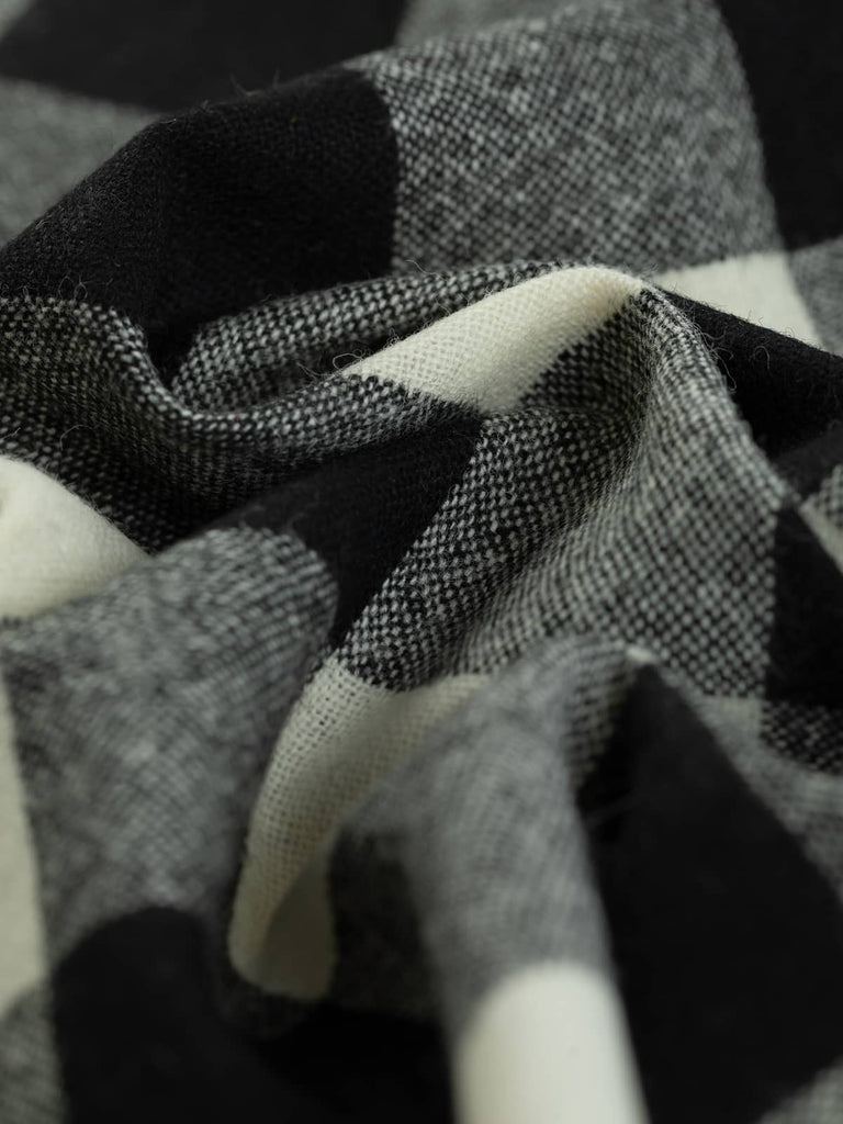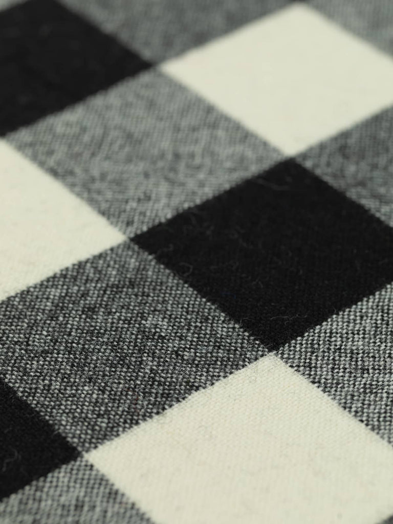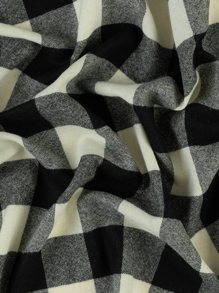 A classic monochrome palette of liquorice black and warm white forms this large block check design. These tones are a staple in most people wardrobes, easy to wear and versatile.