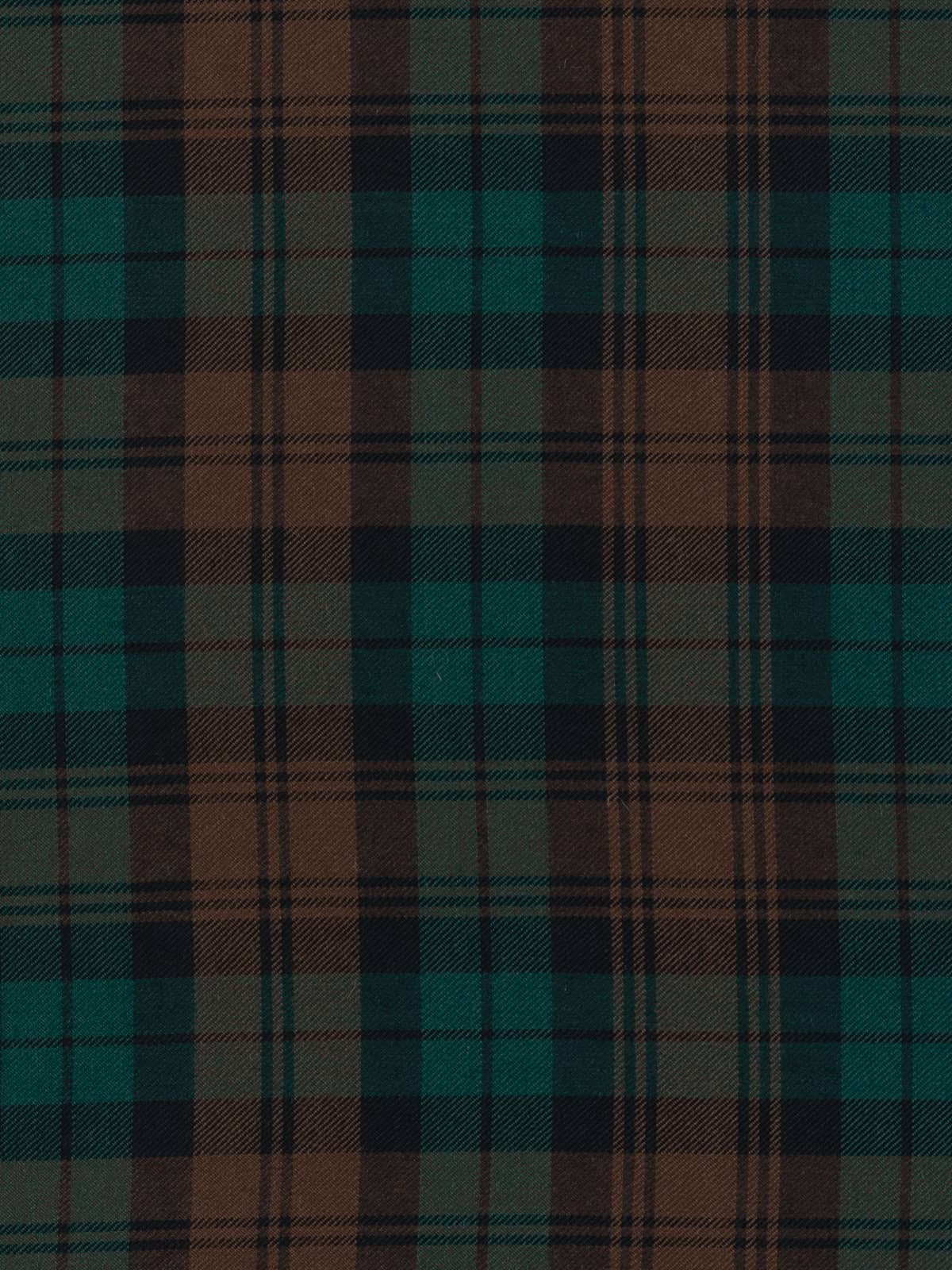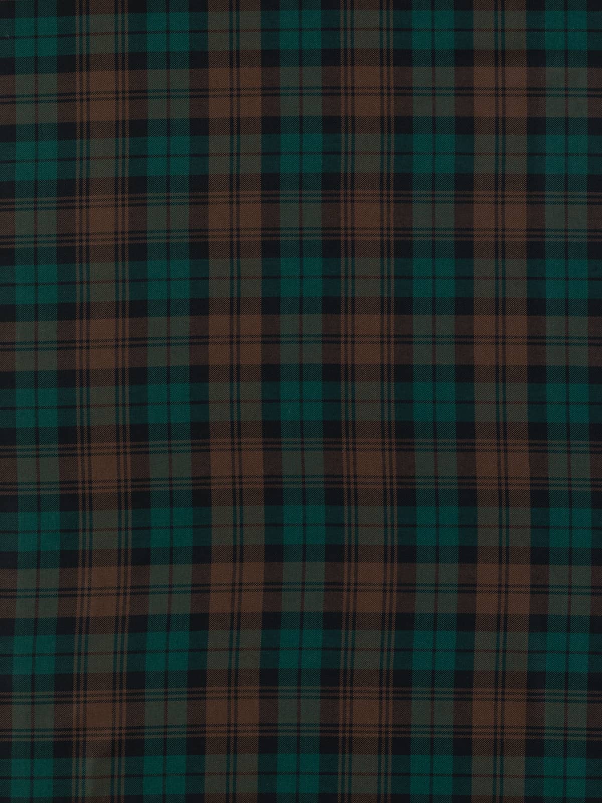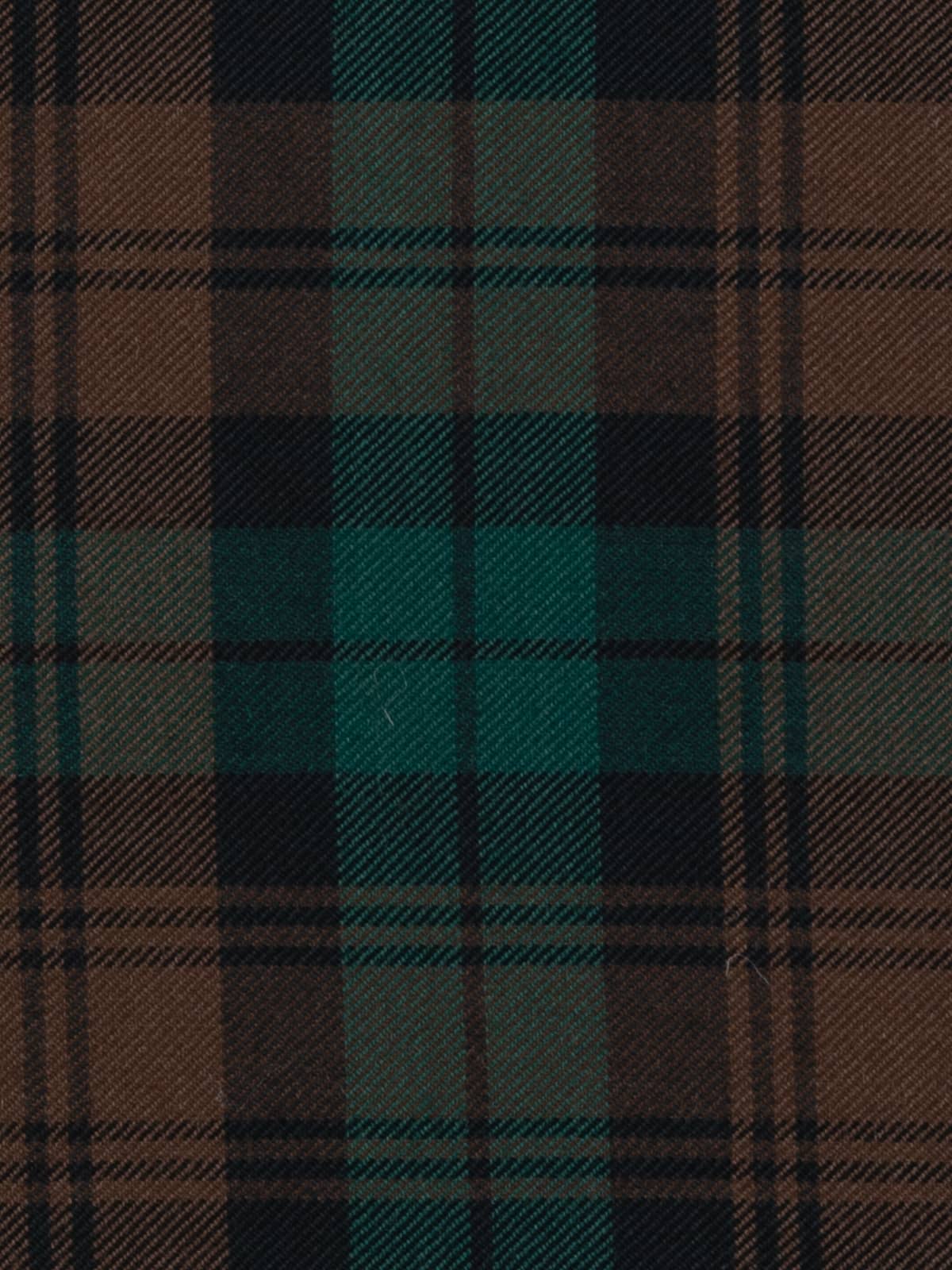 Design: A watch‑style sett characterised by broad blocks of brown intersecting with green fields, overlaid with fine black overchecks. The geometry is disciplined and evenly balanced, producing a structured, traditional grid. The design corresponds with the established Brown Watch lineage recorded in official tartan registers.